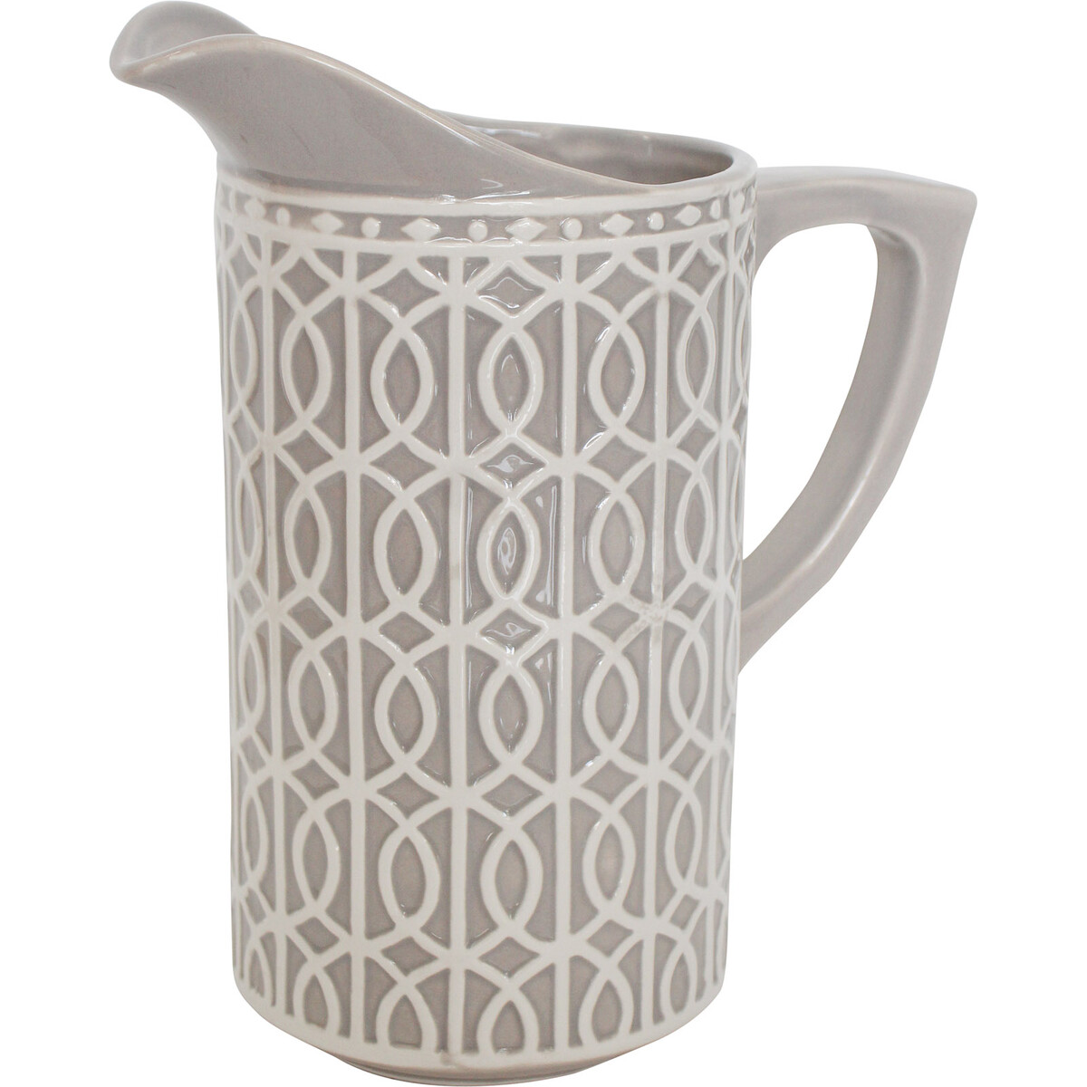 A perfect addition for the table, mantle or the desk, pottery additions such as this bring a fresh vibe that emanates from its earthy associations and its traditional leanings. Made using age old technique of fine ceramic crafting, this Inca pattern jug features a white and grey pattern on high glaze exterior. The handsome and sturdy jug will add charm and interest in the space with its presence, be it simply for pouring a glass of lemonade or for holding fresh cut flowers from the garden.