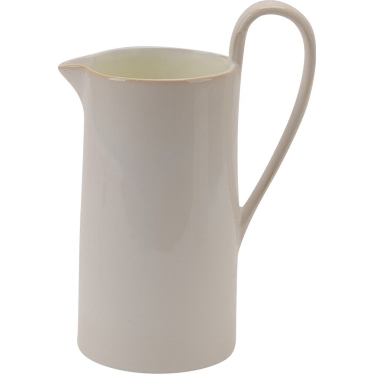 The pearly white colour pf this jug has a sheen that instantly makes you want it as part of your ceramic collection. The graceful high arched handle is easy to grip and the snout designed in such a way that you will find it easy to pour from it. the jug stands as tall as 22 cm and has a round body that tapers gracefully as it rises. Sits on its round base and looks charming in its simple kind of presence. When the jug is resting between its ordinary duties of serving water and lemonade use it to place fresh flowers and help make any table top look prettier. Will retain its beautiful pearly white colour and sheen for as long as you use it. Made using traditional kiln firing method of creating fine pottery-this simple jug is a table accessory any home would like to own.