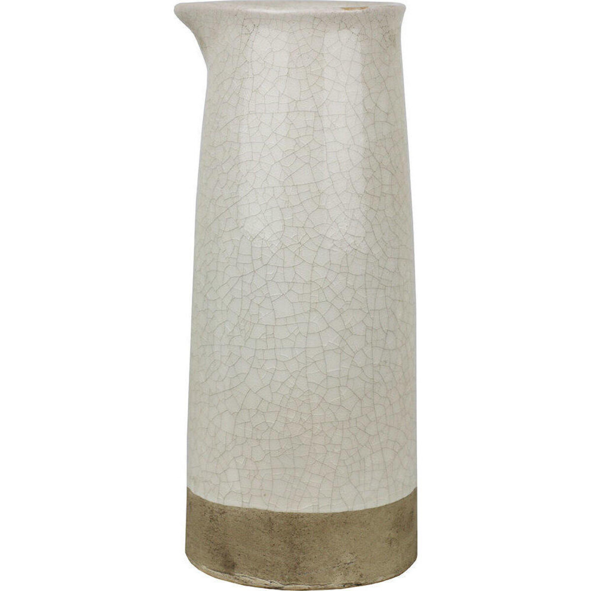 Making your table settings truly converge with great classic look is possible with the help of these gorgeous tableware from Lavida as they have in their successful launches revisited some of the most traditional of crafts and revived them with modern features in tune with modern homes and their needs. This jug is an example of how an age - old craft has been used to recreate a relevant serving jug for your modern dining needs. Made with great expertise the glaze and the crackled effect is set to perfection. The bone white colour, the touch of taupe at the base, the smooth tall solid body and the ability to pour in a steady and well - balanced way also speaks of its design that has been well thought of. The jug would also serve as a vase when not in use infusing your spaces with colour and beauty. Made with an eclectic style, the ceramic quality is high grade which should retain its beauty despite much usage. This tall jug albeit without a handle is easy to hold and pour being slim enough.