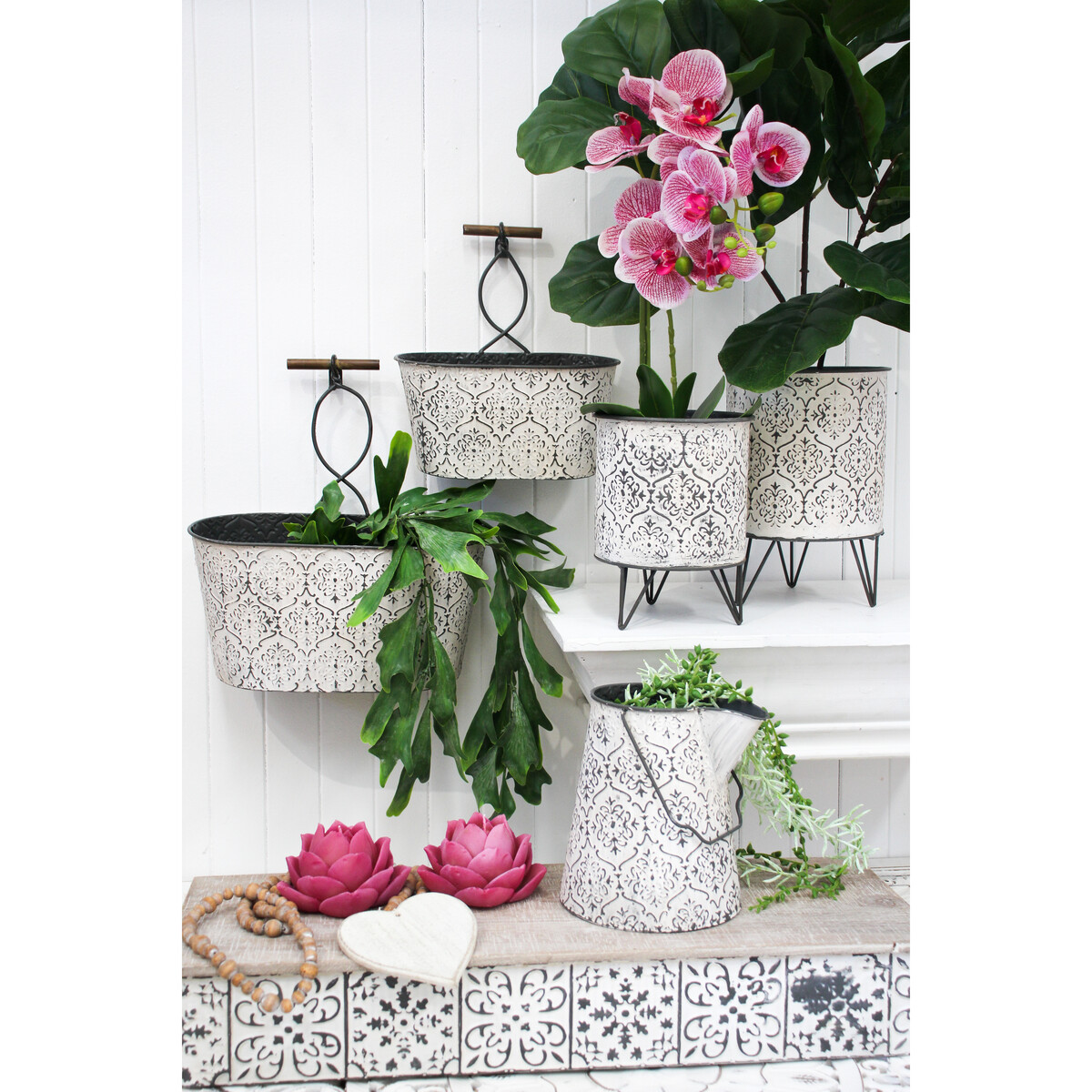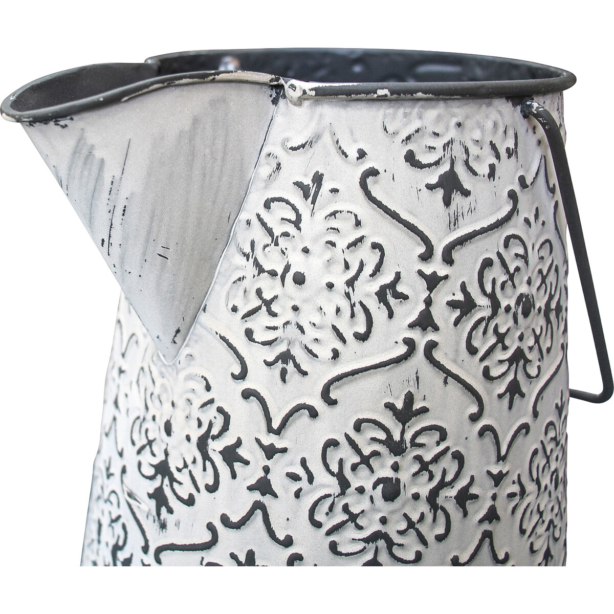 This attractive white jug is constructed from iron and created by hand-turning a flat sheet of the metal on a lathe to give it the required shape. Due to this process, there may be imperfections in the metal, shape inconsistency, and rustic finishes that will make each piece unique. The neutral colours of this traditionally styled jug with a black interior allow it to blend effortlessly with a variety of colour schemes and bring farmhouse-worthy charm to any ensemble!