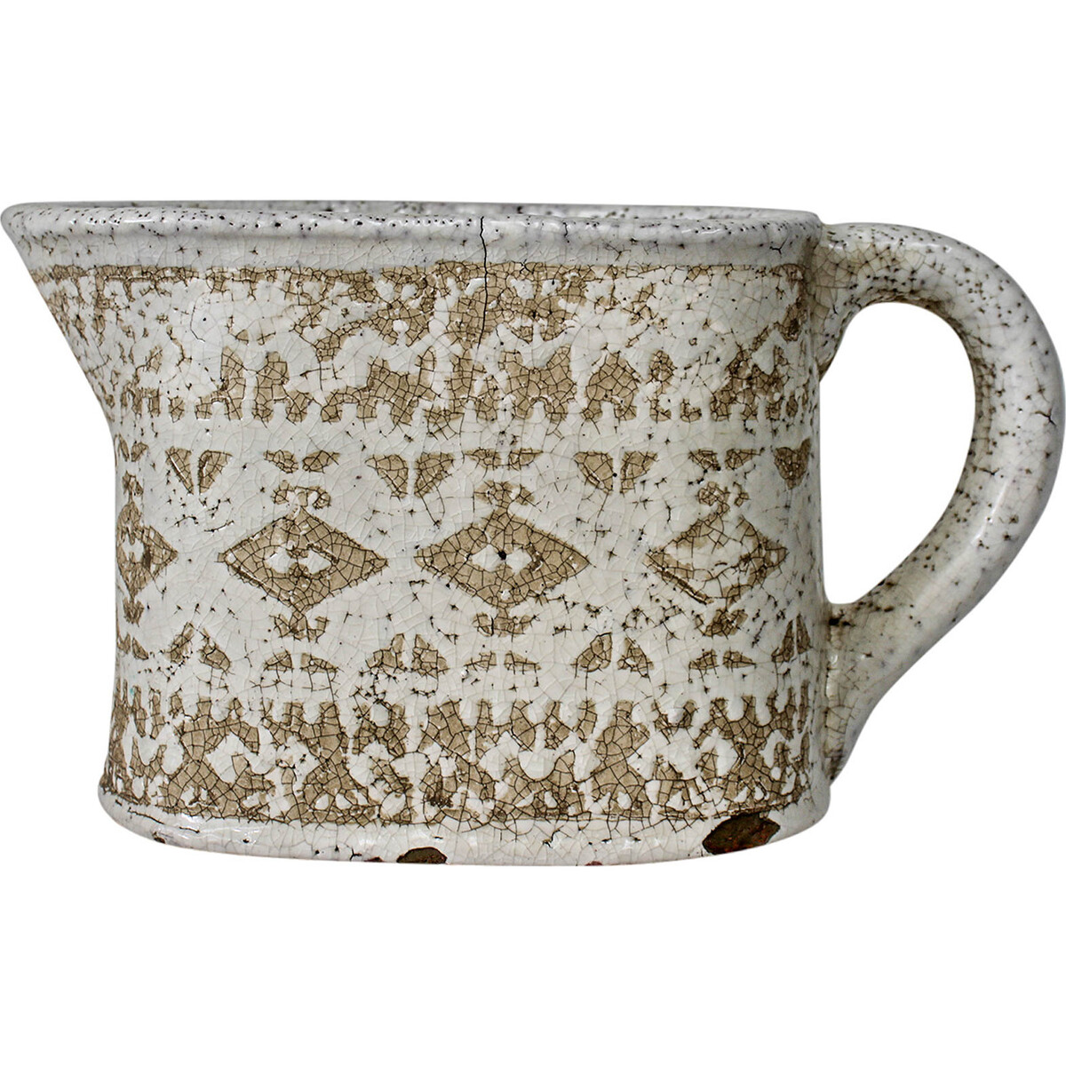 This stunning jug adds more charm and elegance to the dining table, and can also be used as a vase. Its versatility is attested to by the rustic finish that allows it to blend in with different colours. The spectacularly creamy sheen on the outside blends with the beauty of terracotta to provide unique charm. The intricate-looking finish embodies the craftsmanship that went into creating this jug. When using it as a vase, you can display flowers of different shapes and colours, and none of them will feel out of place. The jug's top has a slightly formed lip that adds a delicate touch of sophistication. Whether it's on your table tops or shelves, the Jug Oval Textured will add more charm to your living space.
