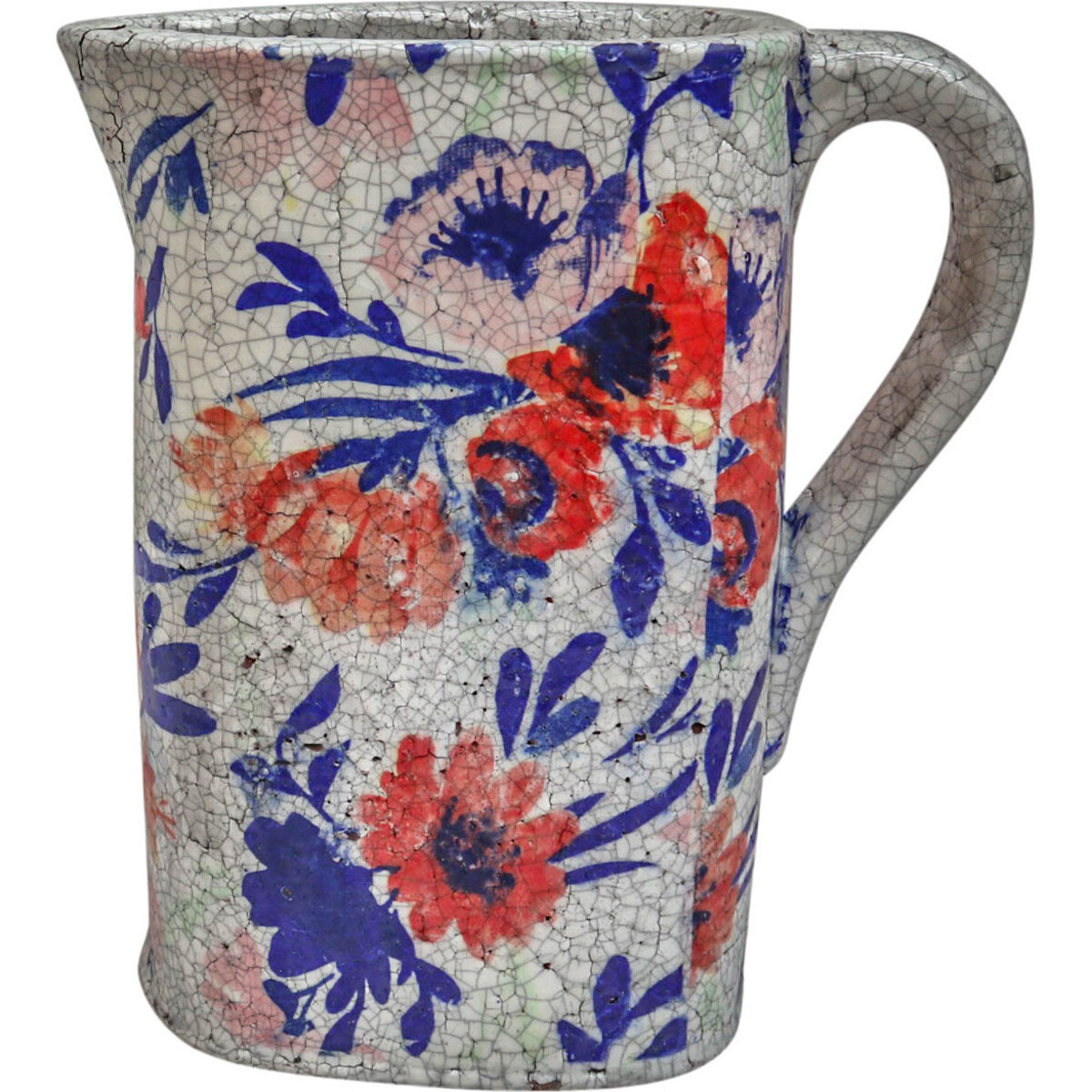 The Jug Oval XL Summer is an ornately decorated jug that is as functional as it is ornamental. It is moulded in an extra-large size measuring 31 centimetres in height which means there is more room for greater liquid containment capacity. As part of its functional uses, it comes with a customer-friendly handle that provides comfortable, firm grip. With regards to its ornamental value, this terracotta made jug is glazed with a floral motif of blossomed red and blue flowers giving it that energetic decorative enhancement perfect for a lot of décor settings. There are 4 of these jugs in every carton you order today.