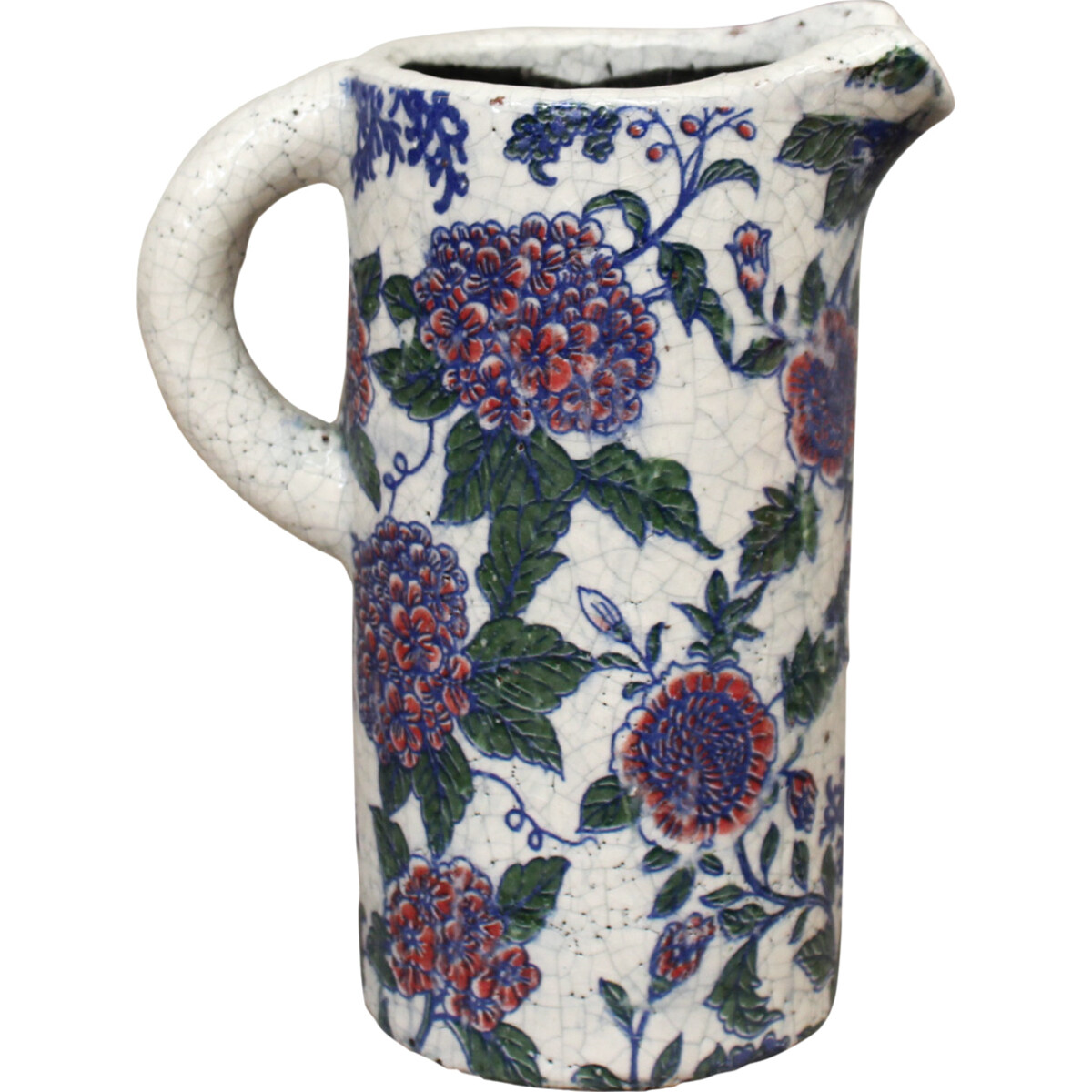 Jug Round Simple Flower effortlessly doubles as a functional and an exotic centrepiece. The flowery textured print of this hand-crafted piece is one that makes a statement on its own. It certainly adds a splash of colour to one's décor. Jug Round Simple Flower certainly works as a vase too. Our product is finely made with ceramic, an organic material that won't topple over when it gets windy. This planter is a fine choice when one is considered gifting a plant that is already in a pot.