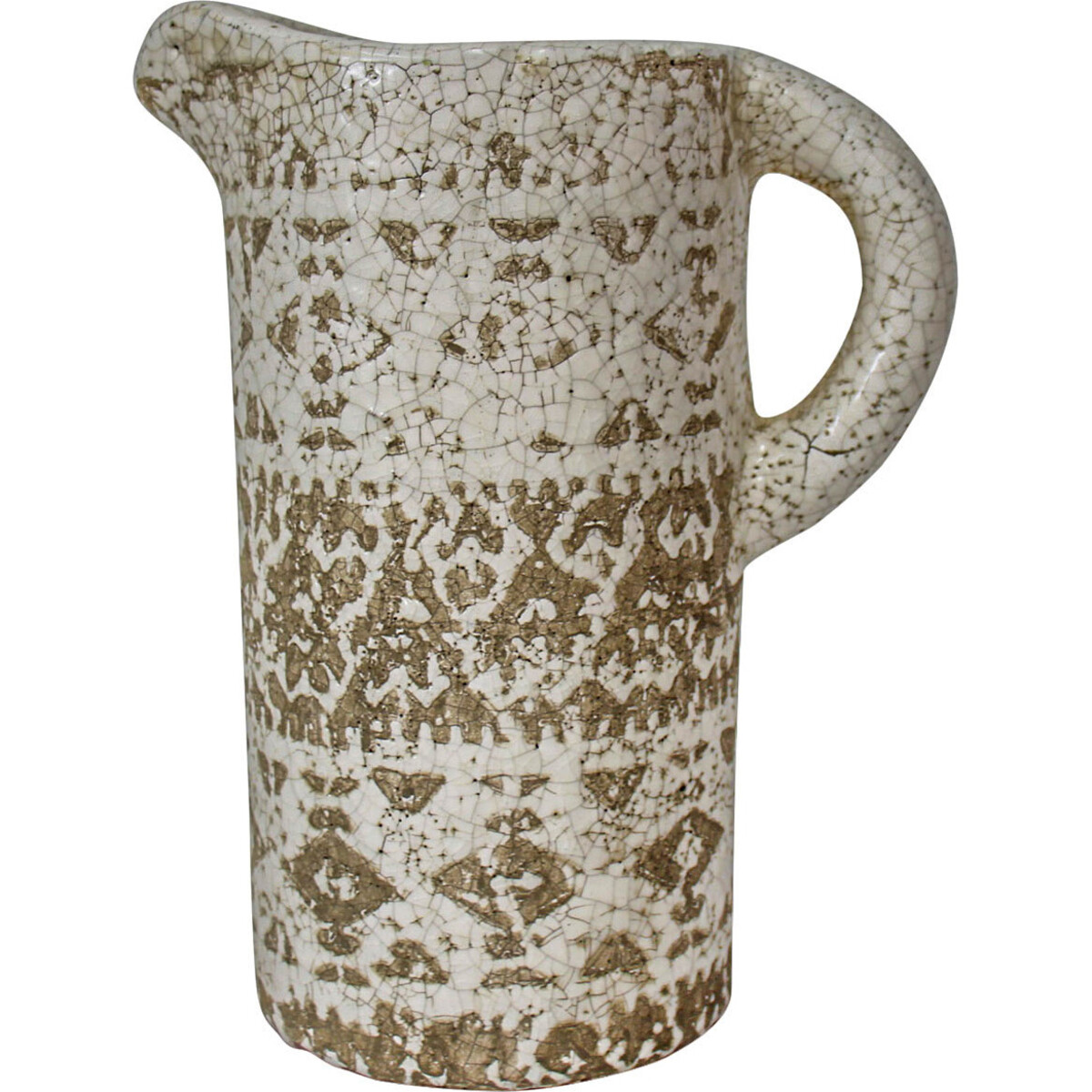 Crafted cleverly in a solid, tall design which measures 18 centimetres in length, 11 centimetres in width and a height which measures 23 centimetres, the Jug Round Textured was built to be functional as well as to last for a long time to come. It is made of terracotta earthenware material which is moulded into a tall, shapely jug which has a curved lip for easy pouring of its contents and an ergonomic handle which makes it comfortable to handle and carry around. It is food-safe and would be suitable in serving variety of liquid food such as juice, coffee, water, milk, and even tea.