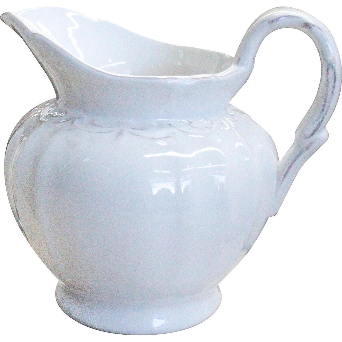 The jug has this curved shape that has ribs all over. The glaze in white looks absolutely stunning- while the delightful shape has been crafted without too many embellishments keeping it more towards a minimalistic style piece. Makes for a wonderful vase as well-when not in sue to pure out a chilled glass of water or lemonade it will be great looking vase in keeping with a cottage and country feel setting. The handle of the jug gives you a firm grip and helps keep it balanced even when filled to the brim. The snout too allows very easy flow during pouring. It sits on the small base from where the graceful looking curved body widen sat the centre and again narrows slightly to give your this utterly charming shape. Adding cups and glasses to match this white coloured jug should be easy enough.