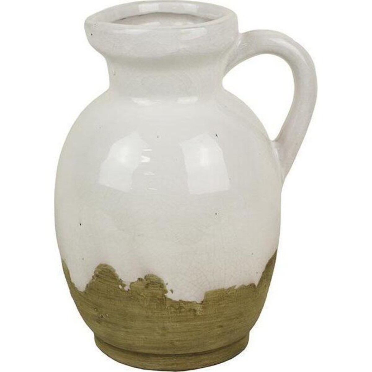Jugs are needed for any home and ceramic jugs possess in them the ability to infuse some amount of fresh country appeal that comes from their simplicity and handmade character. This white jug with it base done in a splash of ochre brown is a lovely addition to any table that needs not just another container for fluids but also while at work will be able to add the classic vintage charm that this simple piece possesses. The Jug Testino has an archaic design, a lovely glaze that has been acquired from the right amount of firing and baking technique and of course has been ergonomically designed in such a way that it is easy to grip from the handle and pour. The jug is 20 cm tall and about 13 cm wide. It sits well balanced on its small round base and makes for a lovely classic look on any table. When not in use stick some fresh flowers in them and make use of it differently. A ceramic jug can only add more vintage charm with its simple lines and gorgeous handmade character.