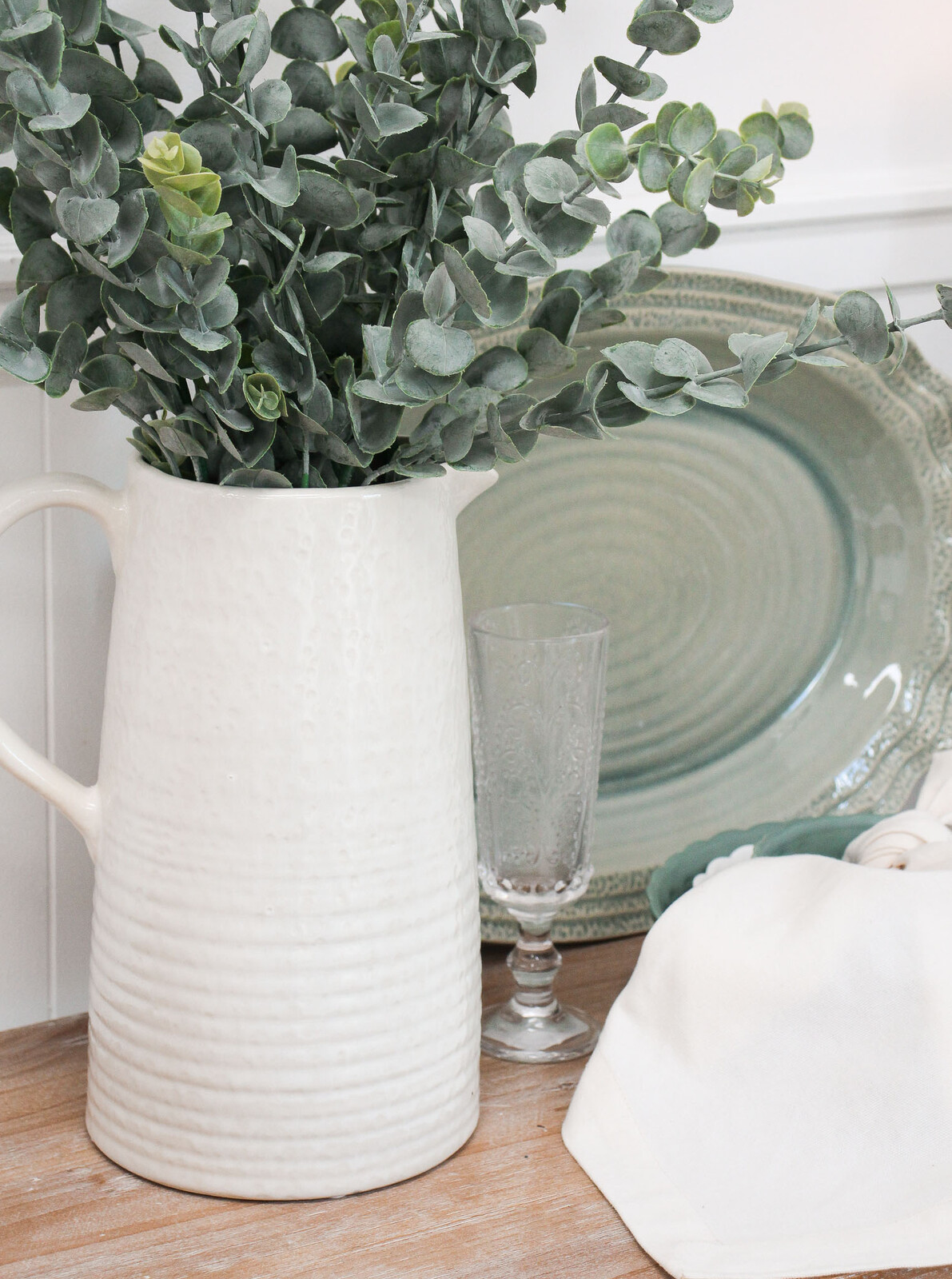 The stoneware ceramic gives it this soft natural finish that suits most decor styles. Minimalist homes? Lovely. Cosy rustic corners? Even better. The jug's just got this gentle vibe that instantly says 'easy living' and practicality without fuss. And of course, while they're beautiful to look at, they’re also practical enough to serve up water or juice at a get-together (which is what people want in their homes).