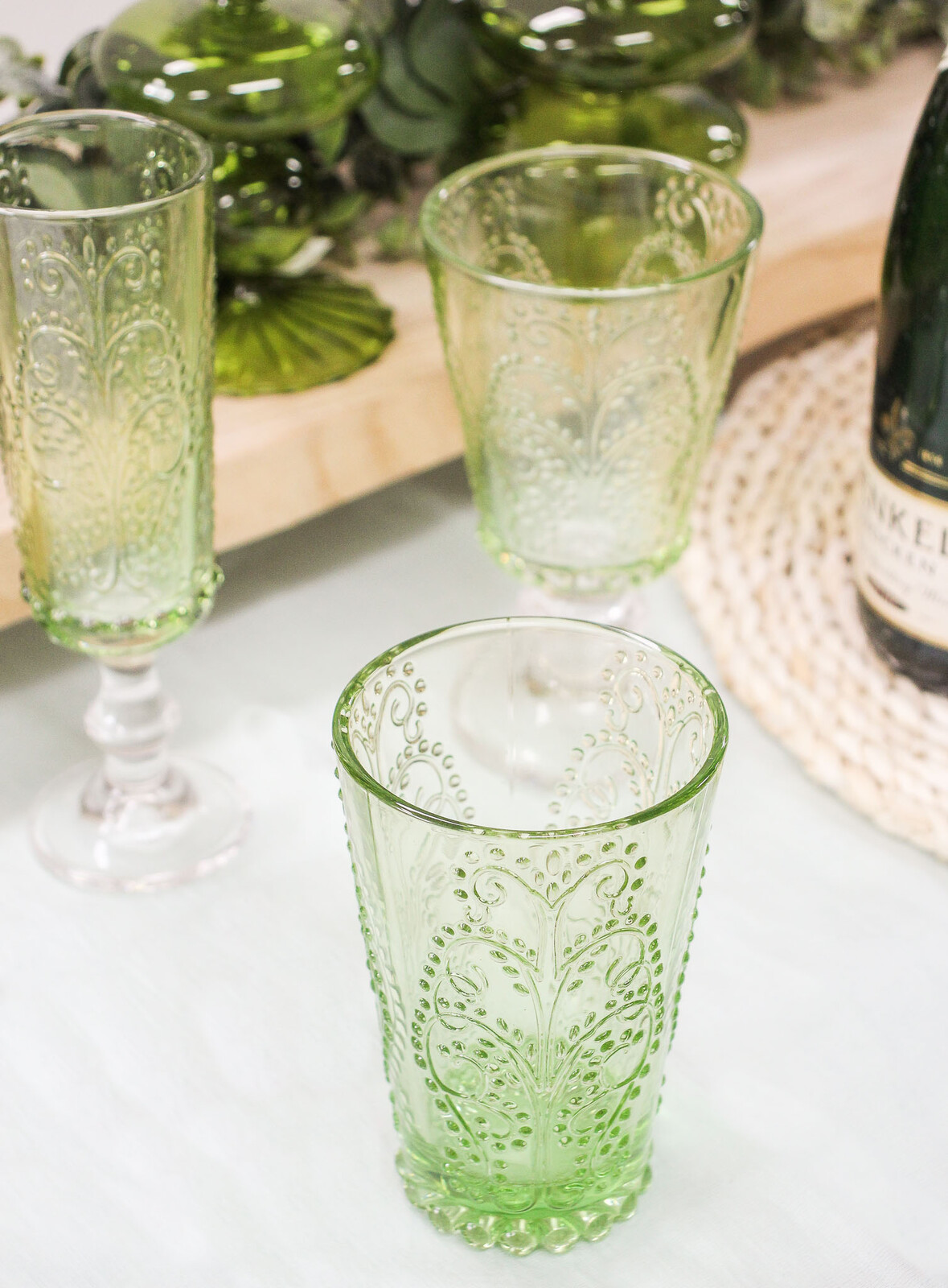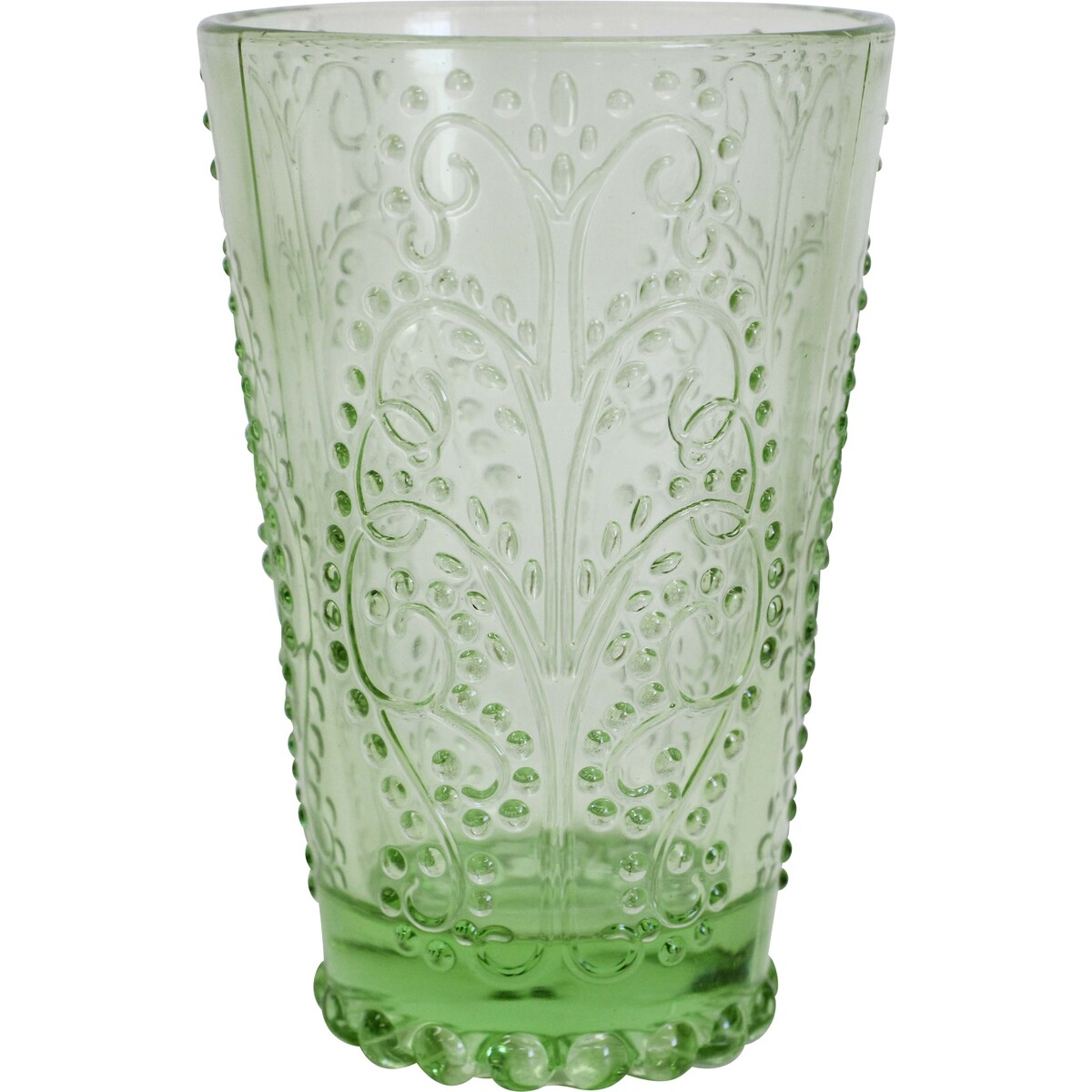 Our Juice Glass Apple is a real favourite with our team because it’s just so effortlessly pretty. The lovely 8.5x8.5x13cm shape fits well in the hand - not too tall, not too squat. It brings a touch of old-school glamour and colour to tables without being intimidating or ‘too much’. It’s crafted entirely from glass, with those intricate details and unique imperfections actually being part of the design, not a manufacturing flaw, which is often a nice selling point for consumers who like something out of the ordinary. We always make sure customers know that batches can vary a little in shade and pattern, and people who love this look actually get quite excited about having a set with small differences. There’s really nothing else quite like this gentle apple-green in glassware at the moment. It brightens up table settings and makes water and juices more inviting - not everyone wants to use clear glass every day. We are always restocking these as they’re versatile enough to work in bohemian or vintage settings, family kitchens or contemporary homes who want a hit of colour amongst all the white. These catch the eye thanks to their beautiful detail but are still easy enough to coordinate with clear or coloured glassware for daily or special occasion use. Durable enough for everyday drinks but decorative enough to use for parties or celebrations in hospitality too. We think these would look great stacked on open shelves, on display next to green plants or bowls of apples, or as part of an eclectic mix-and-match tablescape where each guest has their own unique glass.