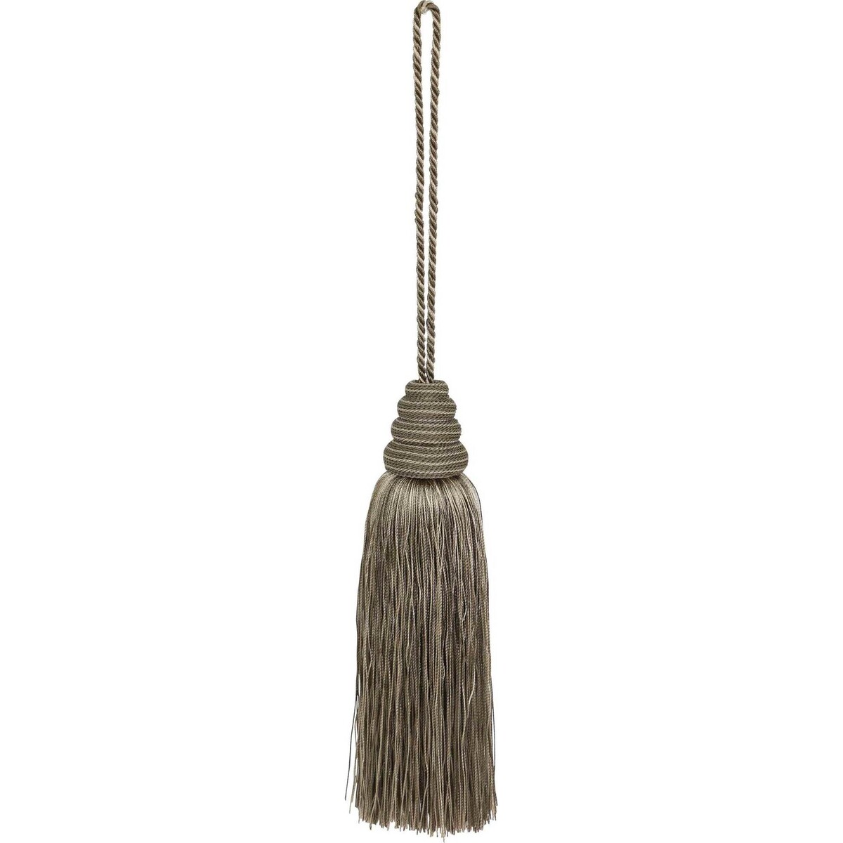 When homes need that tiny little change to make them look special without bringing about any larger switch, there are options like this tassle in soft grey that not only makes things look superluxurious, considering that it's a throwback of a style that was seen in the post reniassnaceperiod and was loved by the French. It brings on this magic of tassel usage to your home with a soft and serene version in soft grey that could be used on drapes, runners on tables or beds, large cushion corners and ottomans. Feel the look of elegence that gets enhanced with just one little application of this kind and revel in the beauty of thingg antique and classical. Just about 30 cm in length, it's size and colour usage is just right for homes that have a classy antique feel to them or that which are preparing to add that look. An easy option to get your home holiday season ready!