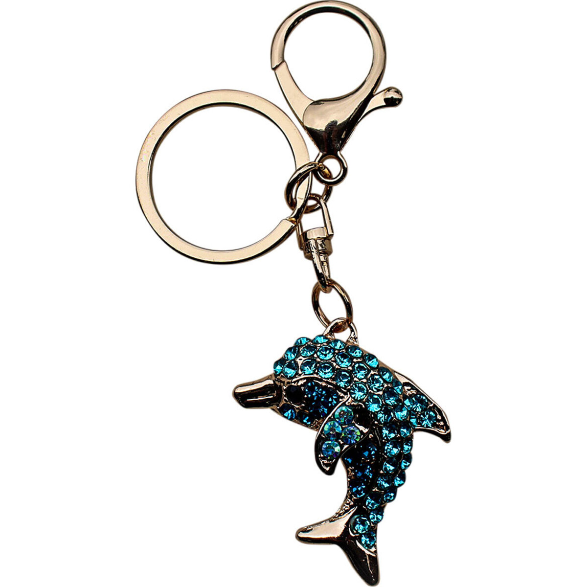 Attractive characteristic dolphins possess is its super-intelligence that cannot be rivalled by any other sea creatures or animals alike. The blue sparkling crystals further accentuate the glamour and allure this piece brings. Keyring Dolphin Blue has a metal ring to hold keys together and a metal spring clip that prevents keeps keys from getting lost when one's hands are full. To halt deterioration and rusting of the metal product, a light feathery coat has been added. This beautiful piece can hold sentimental values. It can be hanged on the walls or kept to on one's rearview mirror to adorn car interiors.