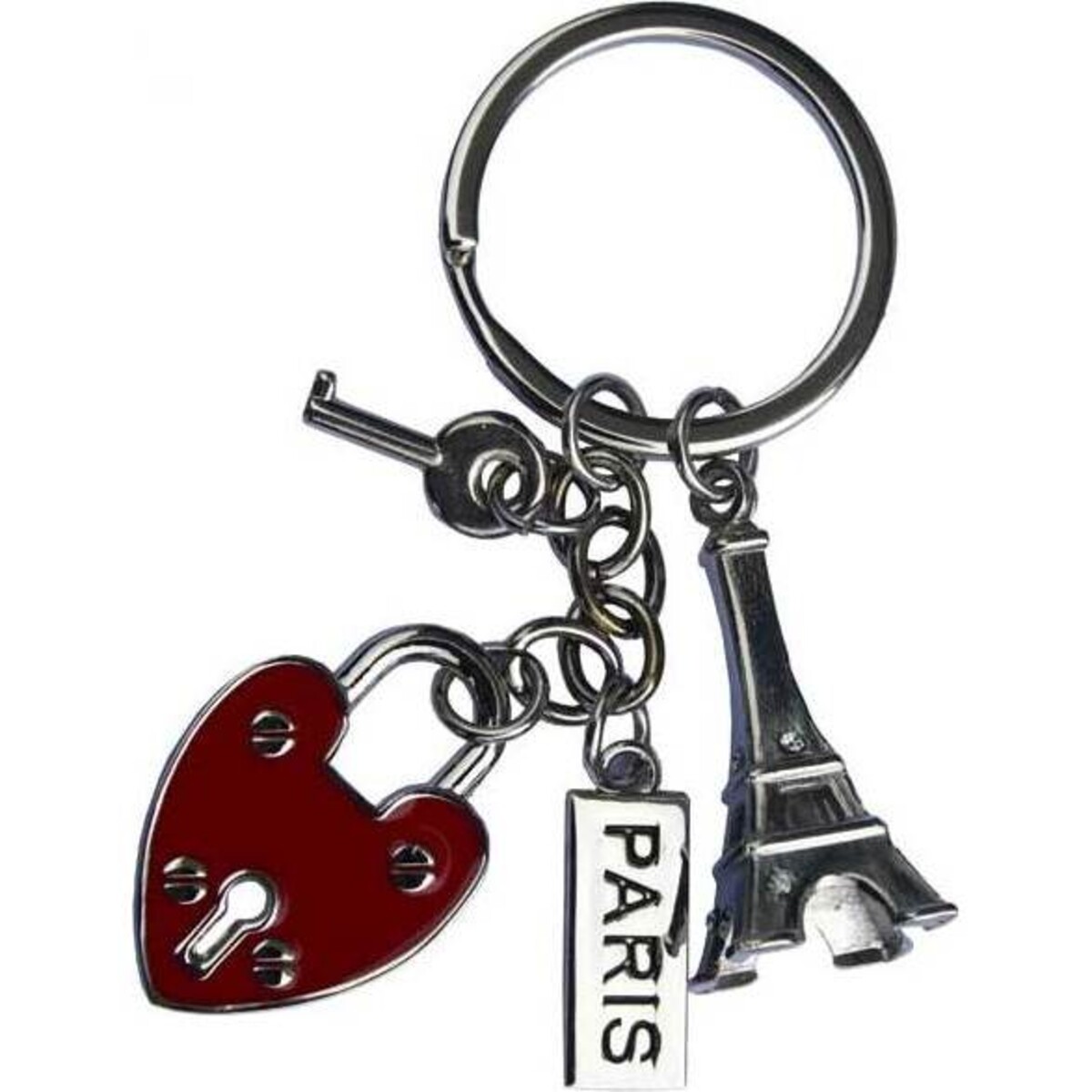 • The fourth charm is a tag that reads "Paris", and all four charms hang from a bracelet style chain.