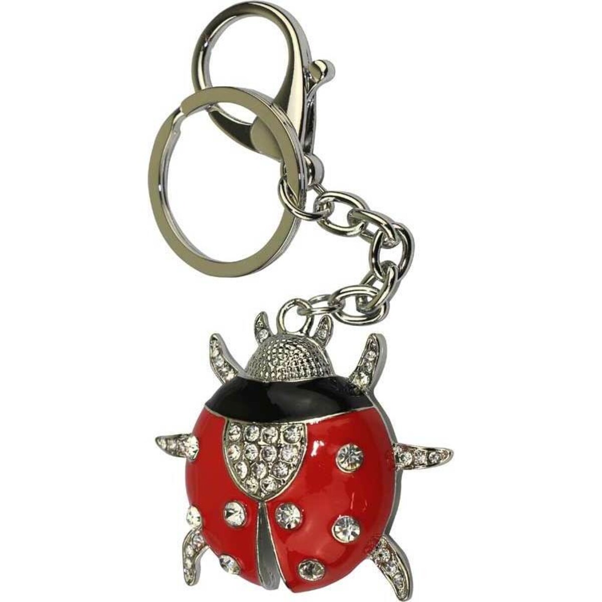 An outstanding design in which the red enamelled body looks so very attractive embedded within are the crystals that represent the little dots that one sees on the lady bird. The two feelers attached to the head , the tiny head with a whole lot of crystals studded and the black enamelled portion ?all of these features makes this ladybird incarnation in the key ring rather attractive and one of a kind. The metal body of the ring of course in itself is so very well moulded and the thorax in black with the wings clearly defined in red makes for the main structure. Each of the six legs have also been created with studded stones and look positively charming .An interesting design ?the lady bird has long been a symbol of the coming spring-a charmer in the garden who makes pollination possible and its image so well defined and created sure makes for a rather lovely accessory that anyone with an eye for detail would love to own.