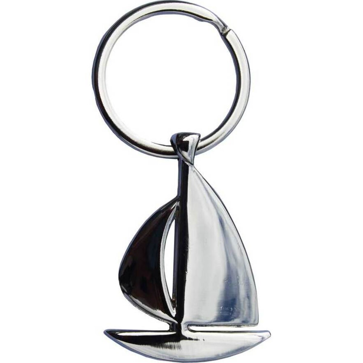 • The silver tone sail boat charm has a hull with a jib and main sail, and a mast that ends at the top in a one-piece construction loop that connects to the keyring, so there's no additional connector to get lost or broken.