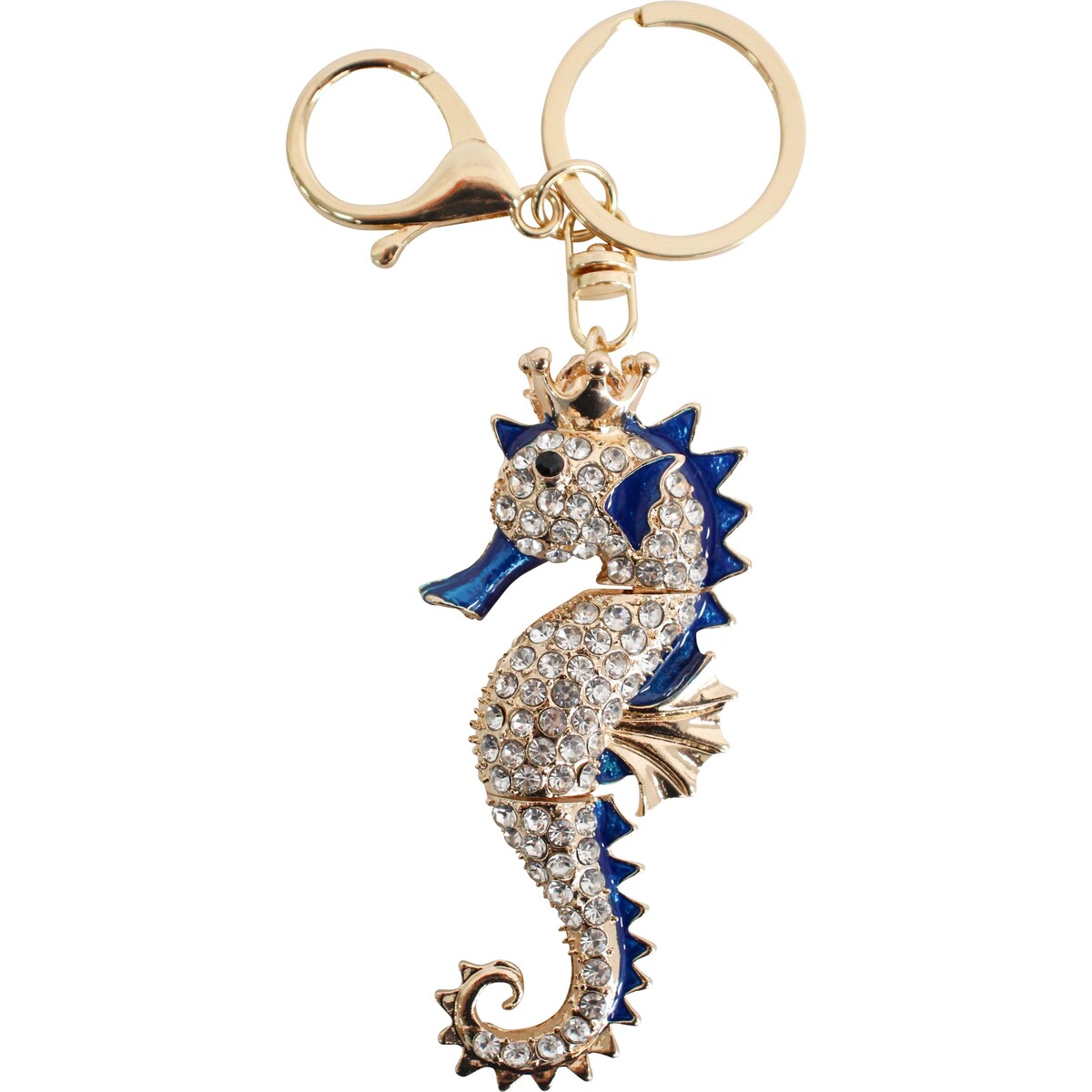 Dipped in a trove of treasures, this seahorse is adorned with an opulent array of sparkling embellishments, graced by a royal blue hue that echoes the depths of the ocean. This fantastical piece is not only practical, offering a steadfast guardian for keys, but also doubles as a dazzling addition to any home or office space. It makes for an exquisite hanging ornament, whether adorning a purse, backpack, or even serving as a small, standalone charm in a nautical-themed room.