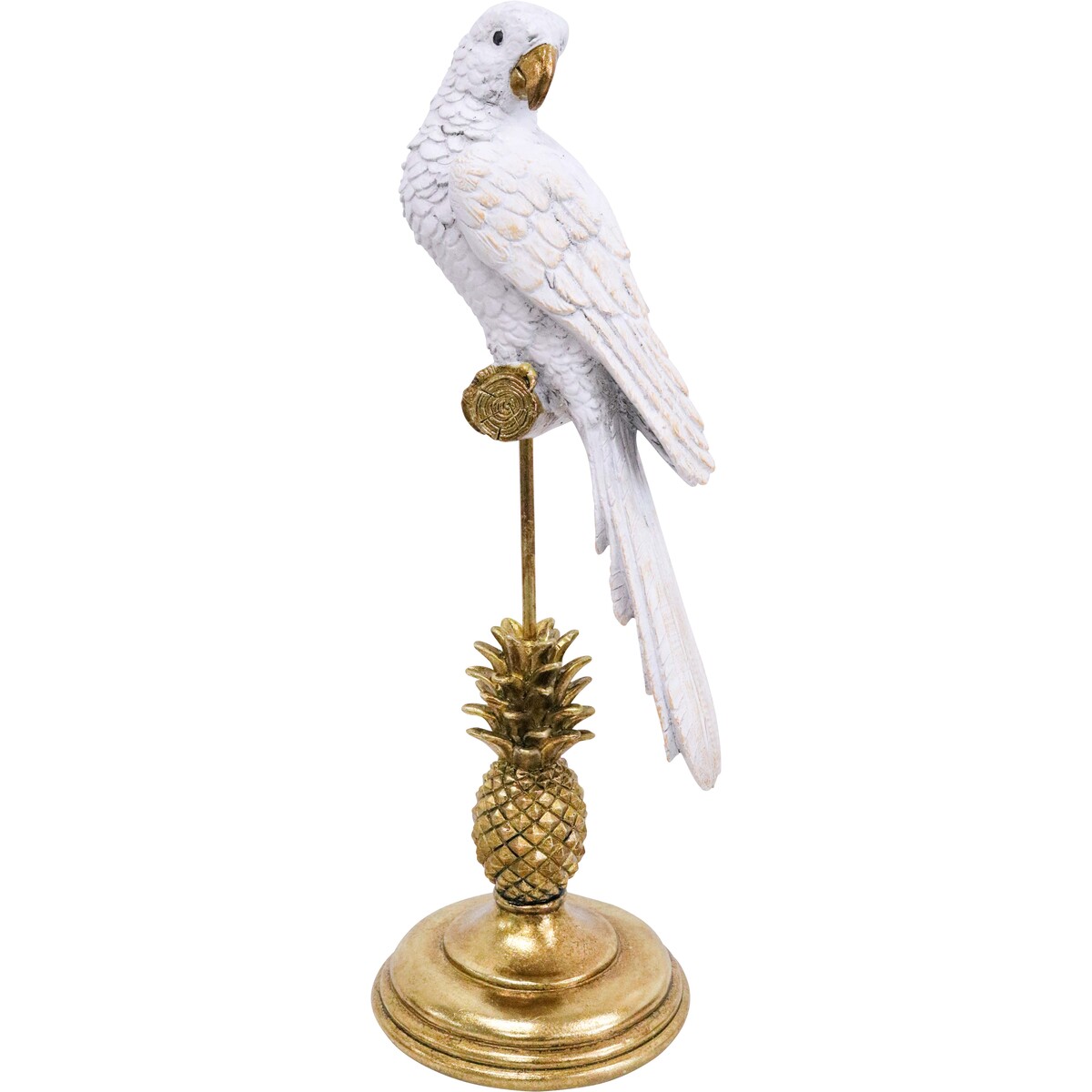 Our King Parrot Bahama Gold/Stand is really a bit of a show-stopper, and that’s why we keep coming back to it. It’s one of those decor pieces that just feels as though it could sit pretty much anywhere - and it often does, from bookcases to sunrooms to entryway tables. A lot of that comes down to the design - there’s a whole lot of character packed into this cockatoo, but the resin body and perch have still kept things feeling grown-up rather than cartoonish. The gold base in the shape of a pineapple (which is a nice touch) manages to be shiny and modern without seeming gaudy. It creates this really nice contrast with the white bird - one finishes the other off really well. It’s just a tiny bit tropical, just a tiny bit colonial, and easy for customers to pick up as an impulse buy for themselves or as a gift for someone they know will love it.