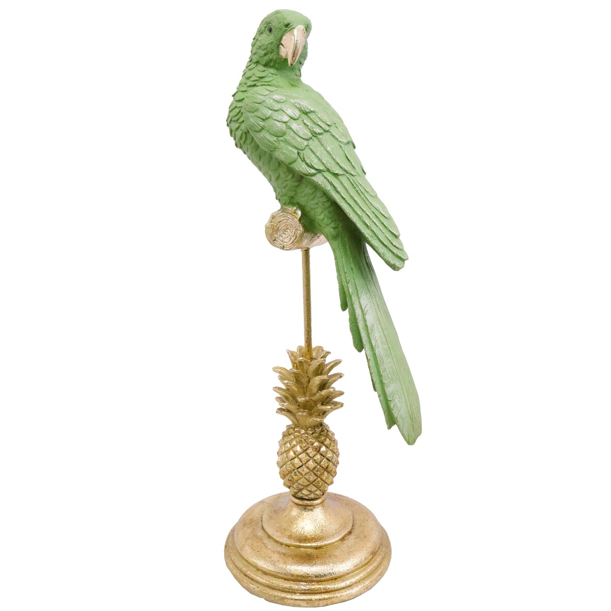 It measures 15.5x13.8x40.5cm, so it’s got real presence as a focal point on a console table or shelf. The green parrot perched upon a golden pineapple brings whimsy and intrigue wherever it lands - and because each piece is finished by hand, you’ll notice those subtle differences that make every sculpture its own work of art. It’s resin and easy enough to clean with a soft cloth - which helps the gold accents really shimmer in good lighting.