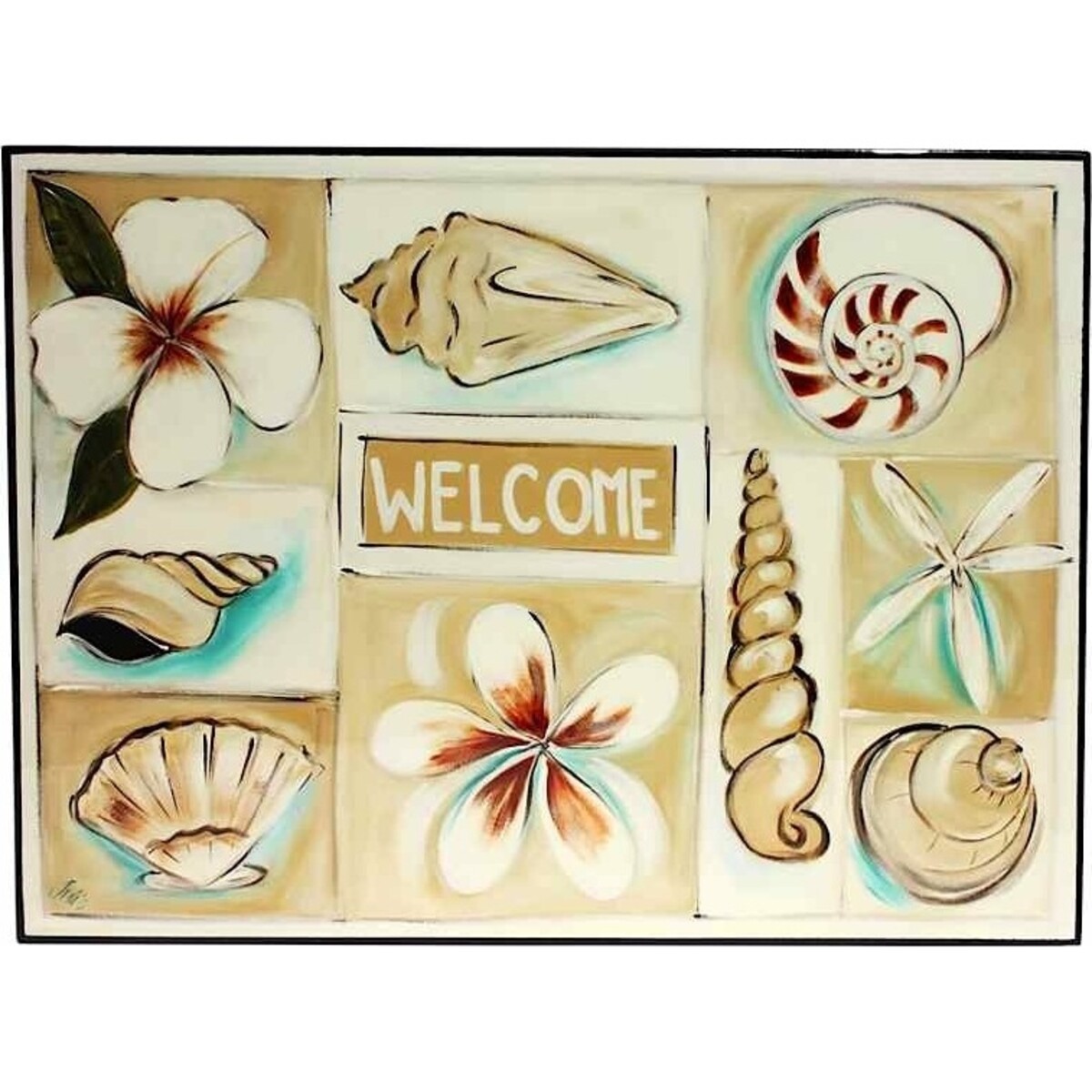 Shells in all shapes and sizes are accompanied by images of flowers, all set in the calming hues of the golden sands typical of local Australian beaches. The neutral hue of the sand gives the piece enough versatility to fit in with a lot of colours - useful for the discerning interior designer that wants everything to fit in just perfectly.