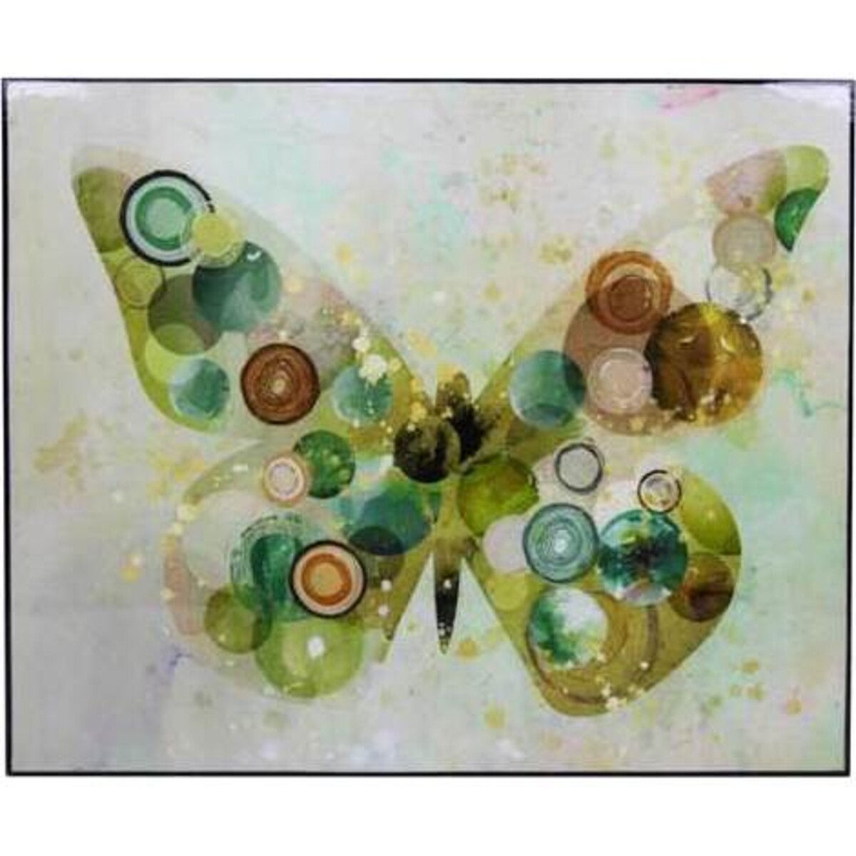 The use of watercolour circles, one layered over another, helps create the pattern of butterfly wings in the Lacquer Print Green Butterfly from LaVida. This large, frameless print features the silhouette of a butterfly with random circles superimposed over the image, but within the wings' boundaries for a pattern that's not quite natural, but remains striking. Various watercolour tones of greens, browns and blues give the butterfly a soothing, restful look. A muted, neutral ground keeps the focus on the butterfly itself. This print measures 50 centimetres tall and 60 centimetres wide for a substantial visual effect on the wall.