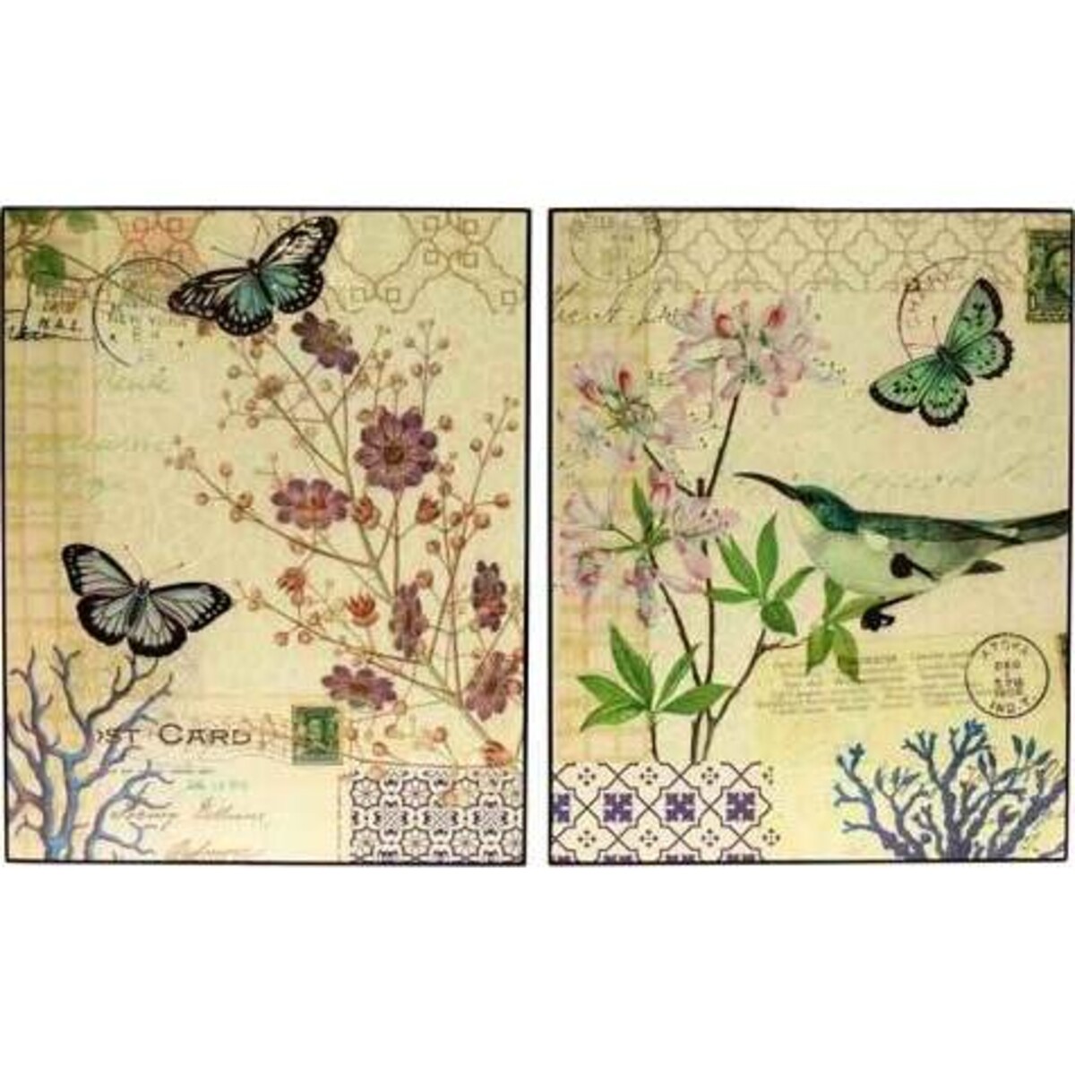 Lovers of postmarks, butterflies and birds will adore the Primavera cream lacquer prints. The prints include a number of features that we will look at. There are a number of similarities that the prints share; both include butterflies, pink flowers, purple branches, purple patterns and a beige postcard background. In the first print, the image includes two light blue butterflies. A number of post marks can be found throughout the print, and a posy of purple wild flowers also dominate the image. In the second lacquer print, a beautiful bird and a butterfly can be seen in stunning shades of green. Again, post marks can be seen throughout the design. These lacquer prints are relaxing, soothing and calming, and they will fit in very well in rooms throughout a home. At 40 x 50 centimetres they are also a decent size, without being so big that they dominate a room.