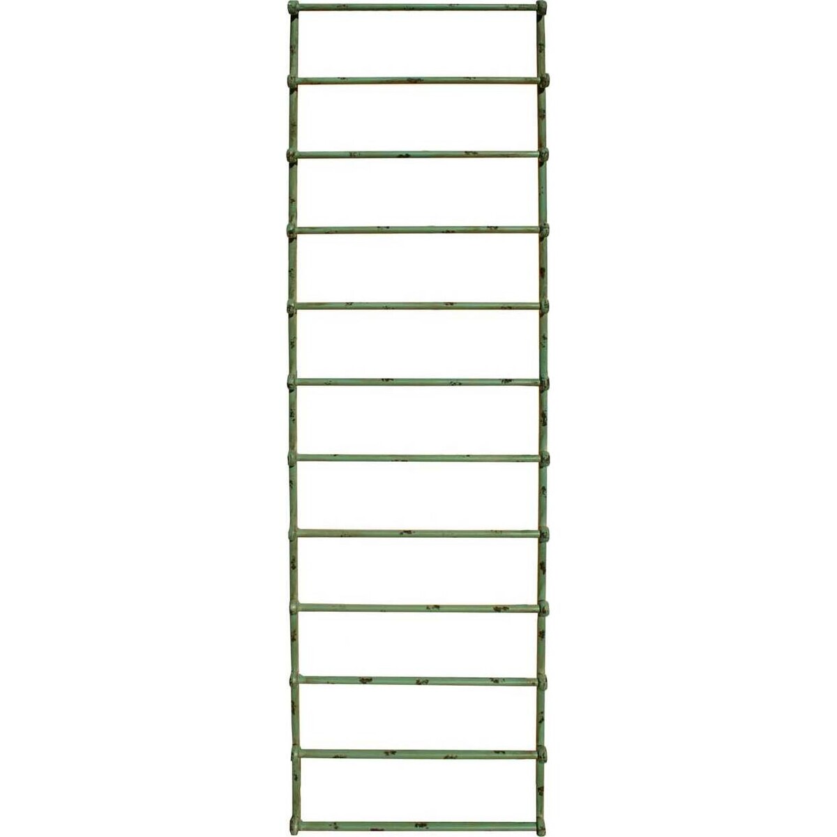 This Hanging Rail in Alto Antique Blue from LaVida creates versatile, convenient, vertical storage while adding vintage style to any space. This tall rail features 12 rungs for hanging anything from towels to magazines to personal accessories. Crafted from sturdy metal, the rail features a distressed, antique blue painted finish. Parts of the finish are worn through or chipped in areas to create an aged appearance. Whether used in the bedroom, living room or even the kitchen, this vertical rail adds beauty with function. This rail would be right at home hanging in a city loft or a country cottage, where it will look as if it had hung there for decades.