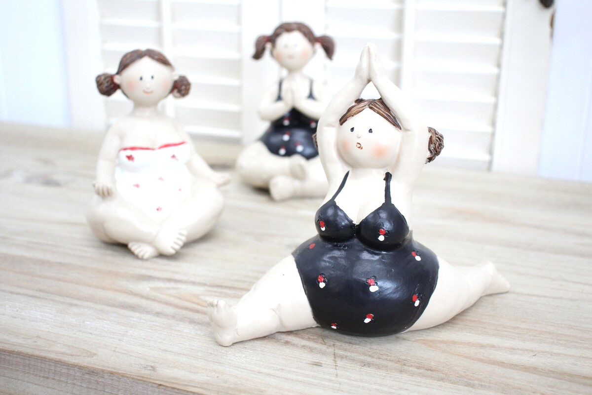 At 18x7x14cm (approx), these are a good size for attention-grabbing impulse gifts and sculptural accents without taking up too much valuable shelf space. Or on a home office desk - we’ll admit to keeping one on our own workstation as a gentle reminder not to take life so seriously. It’s hard not to smile at these cheeky ladies in their bathers, even if yoga is the last thing some people want to do!