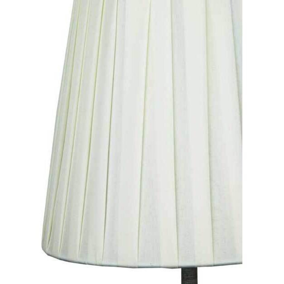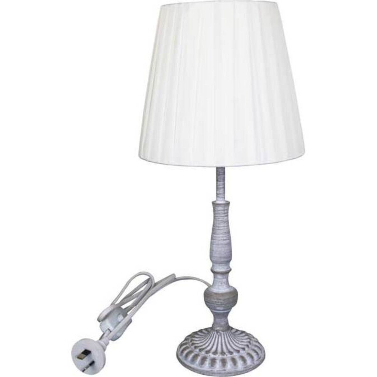 This is a piece of furniture that your customers are going to find hard to resist. This medium sized narrow lamp comes with a neutral white fabric shade. The body of the lamp, on the other hand, is metallic but has a design that creates the illusion of a stone structure. This lamp is truly a unique piece of design which strikes the right balance between ornate and minimalistic. What else is great about this piece is that it will look good in any kind of room - from a casual living room space to a more formal office, this piece will be a great addition to any decor. Not only is it an artistic piece of decoration but it also serves a practical purpose.