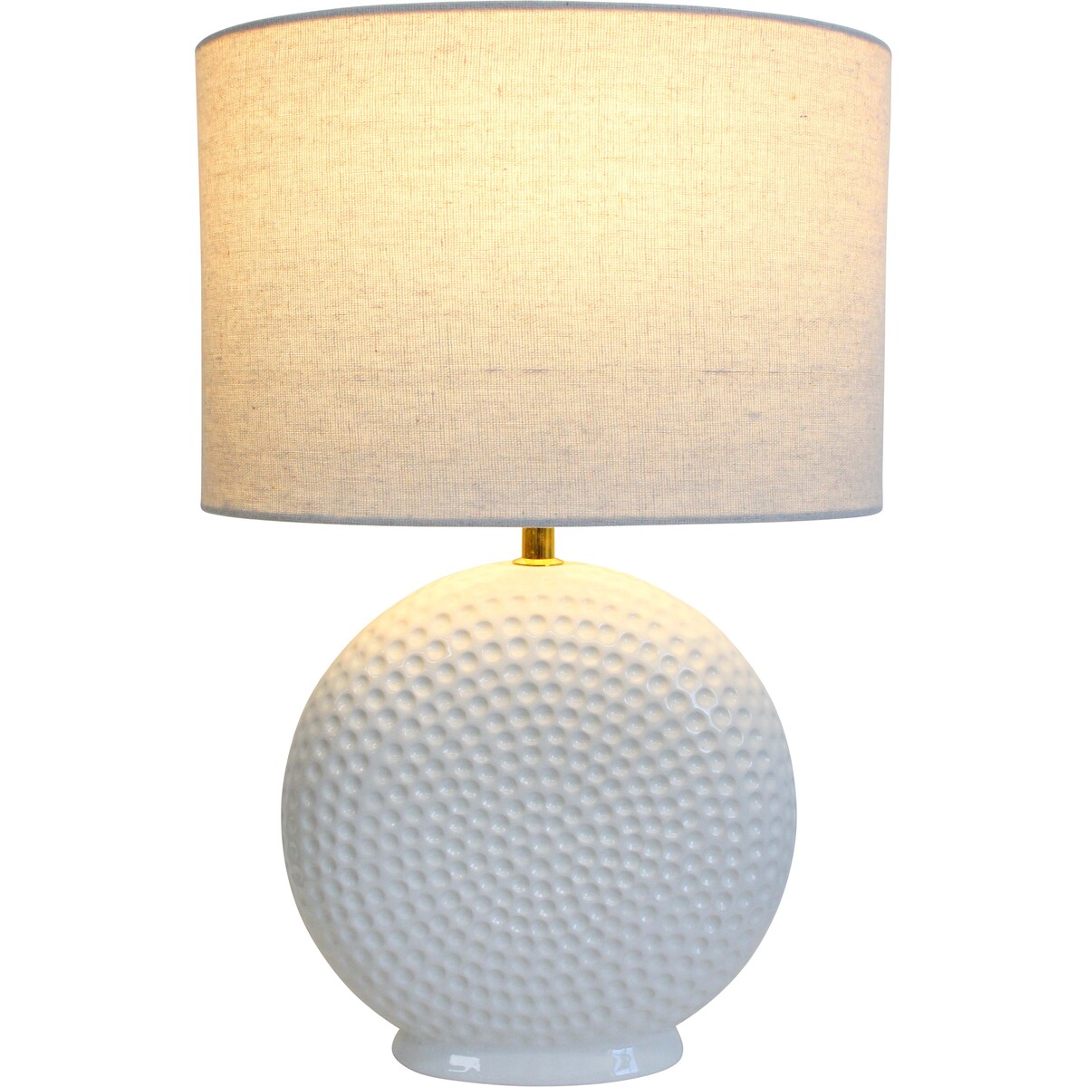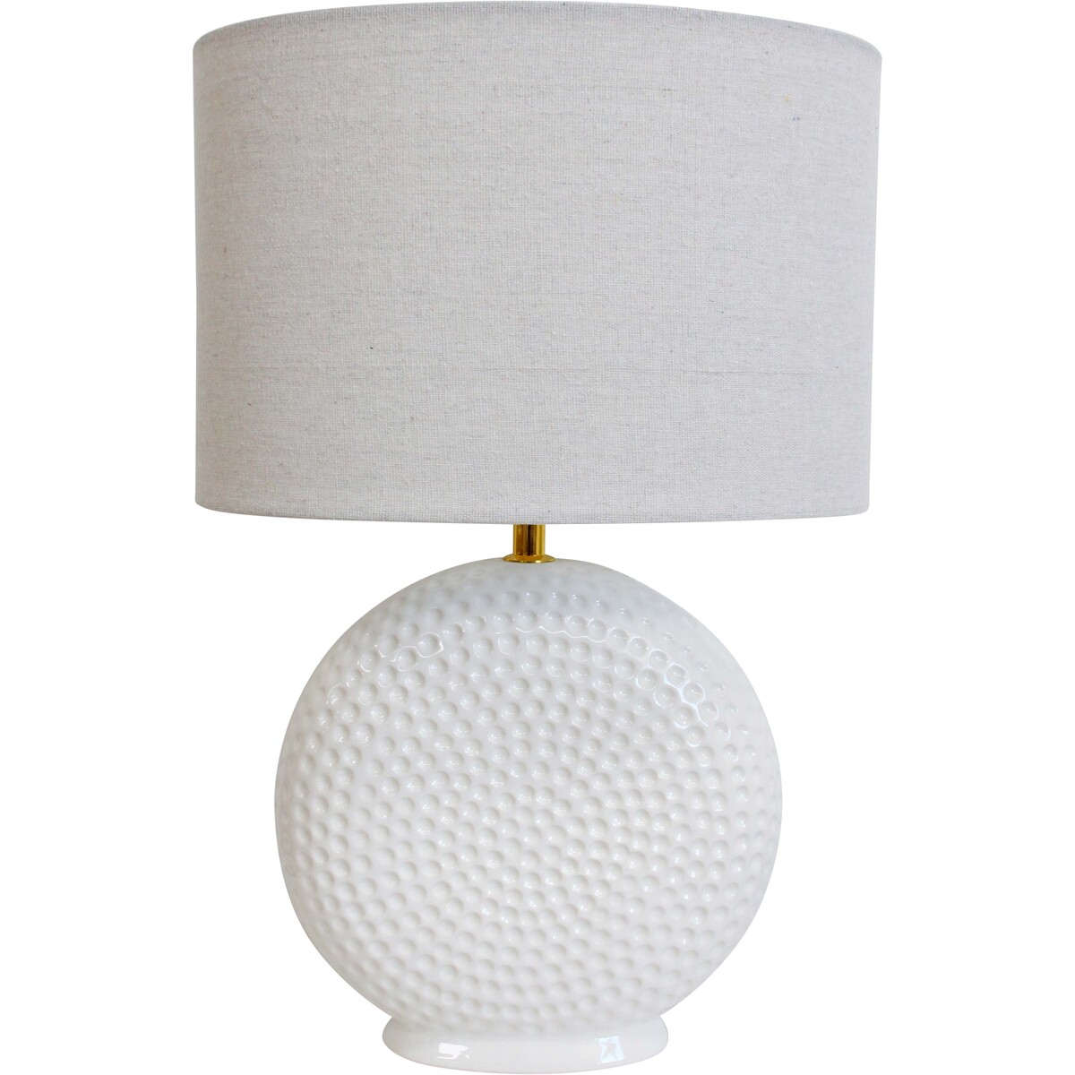 Sometimes the simplest shapes are the most eye-catching - that's what we love about our Lamp Cairo Coastal Sml. It's made from glossy white ceramic with a subtle dimpled texture, and finished with a crisp linen shade that really lets the light shine. Display it near textured planters or tactile throws and cushions to help customers visualise its versatility in their own space.