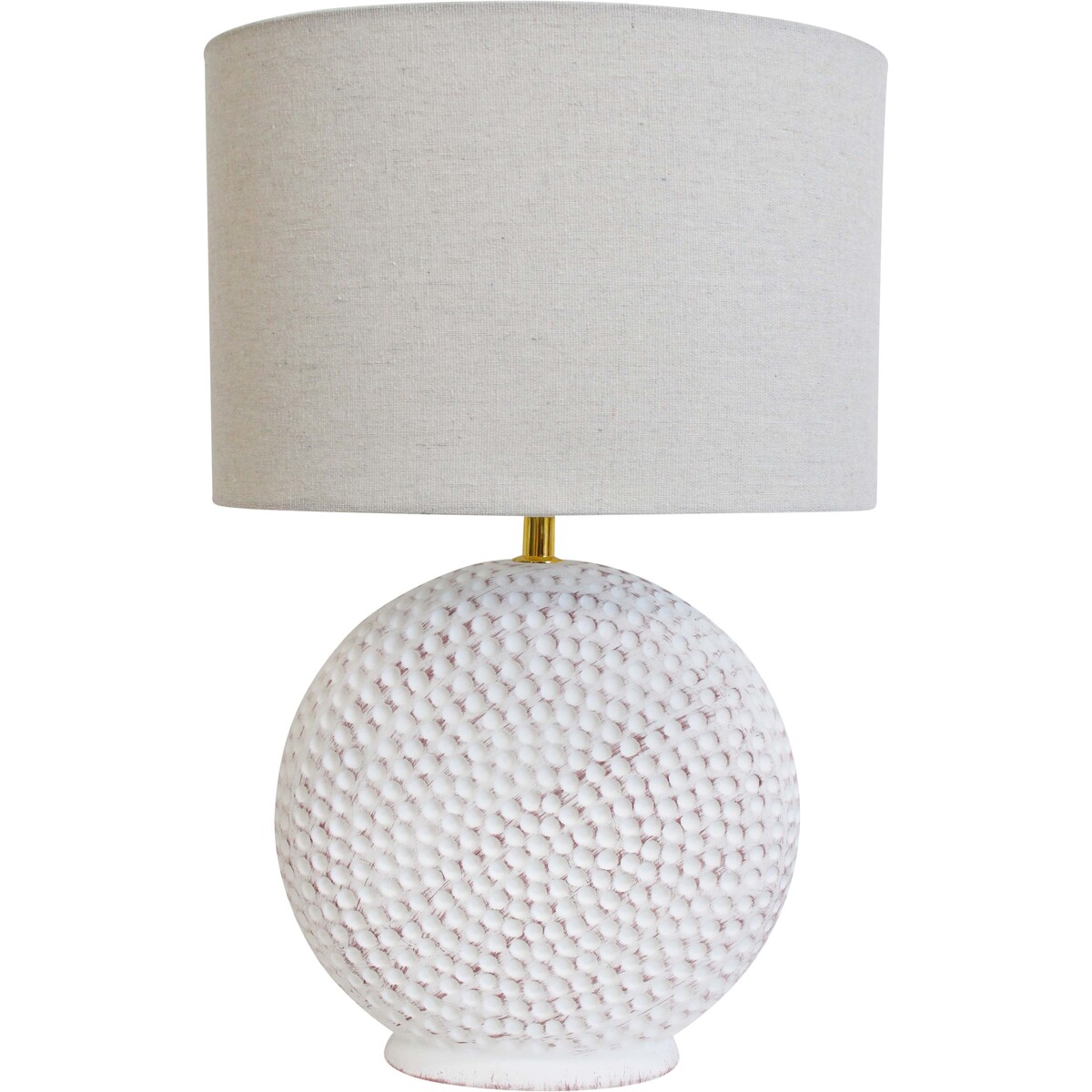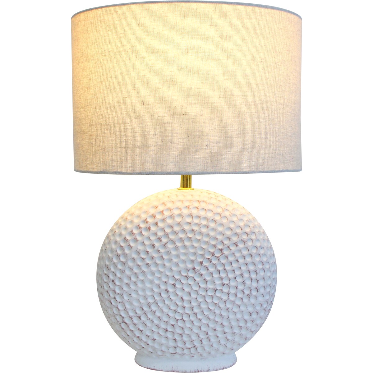 Stylish and simply elegant, the Lamp Cairo is a uniquely appealing portable lamp artfully made through the use of premium quality ceramic material in an unconventional but alluring shape. The base of the lamp showcases a disc-like spherical shapeliness which aligns perfectly with its cylindrical shaped shade. To further make it alluring, the exterior of its ceramic base is prettily ornamented with punched in spherical patterns.