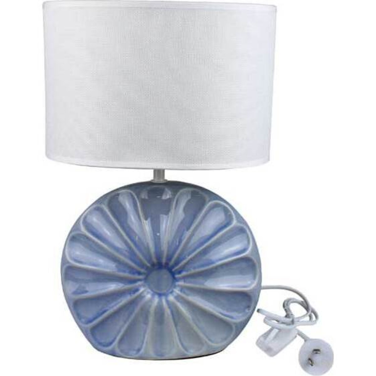 These lamps consist of a round blue base that feature a ridged flower design, as well as a white lampshade and a white cord. Forget about having to struggle to reach underneath to turn the lamp on when a single press of a button on the cord can handle that for you. The lamps are best when displayed in pairs, such as on either end table in your living room or on nightstands in your bedroom. They offer a soft touch of colour, which is perfect for rooms decorated in a country or eclectic style.