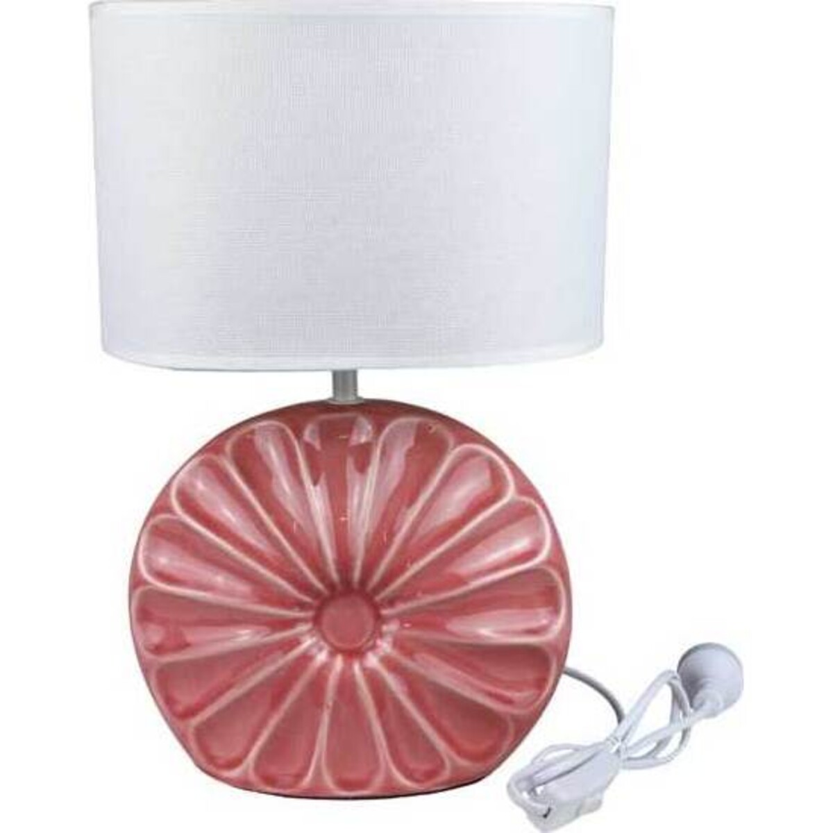 These lovely pink lamps consist of a round base that features a ridged flower design. At the top is a white linen lampshade, and at the bottom is a white cord that includes a button so you can easily turn the lamp on and off without having to reach underneath the shade. The lamps will make a wonderful addition to any area of your home, including on the dresser in the bedroom, on end tables in the living room, or on a desk in the office. They'll be a wonderful addition to your home.