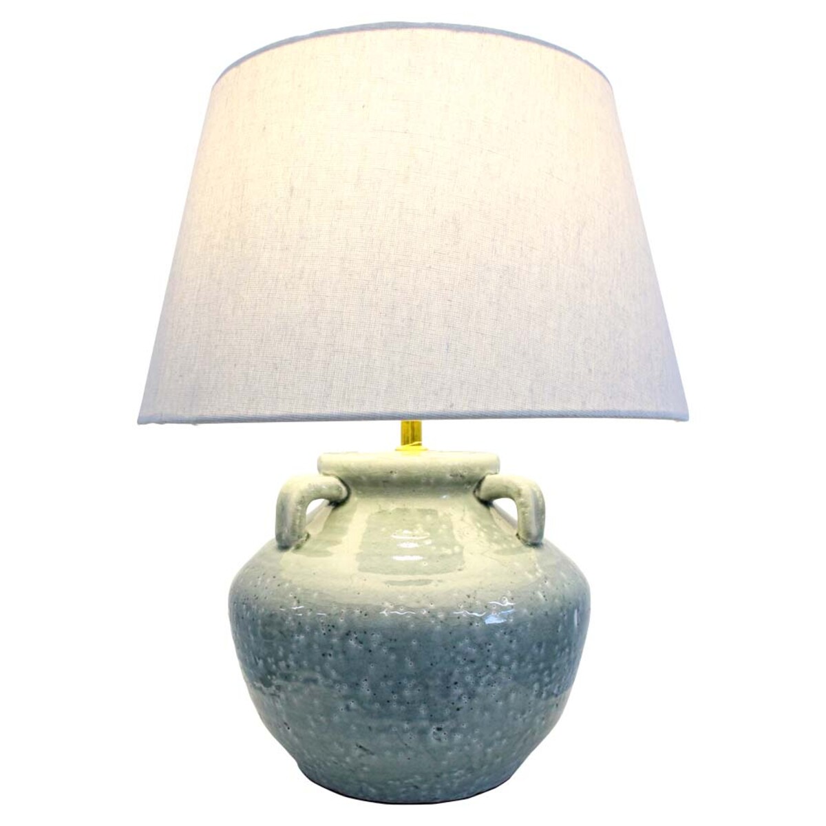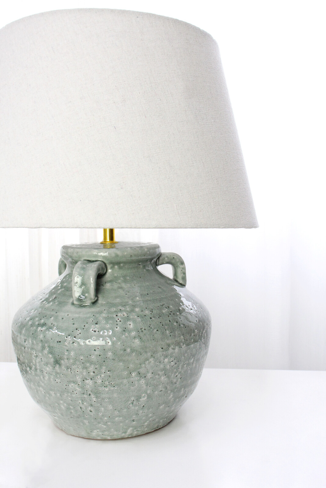 We can't get enough of the Giana Seafoam Lamp. It's a really unique piece in that it's understated, yet quite interesting. The cool, soft blue base is made from a light speckled ceramic which gives it an earthy, textural touch - but that's been balanced out with the graceful curves and slight shine of the glaze. It's topped with a classic linen shade. This is one of those lamps that will sell itself because it catches your attention but doesn't overpower the space.