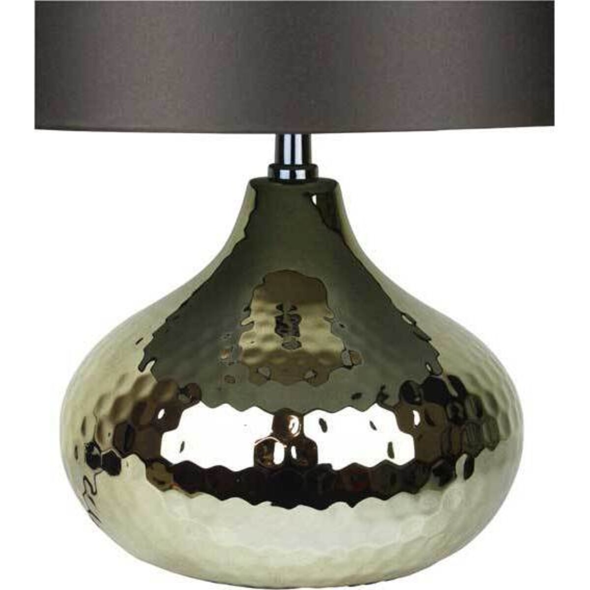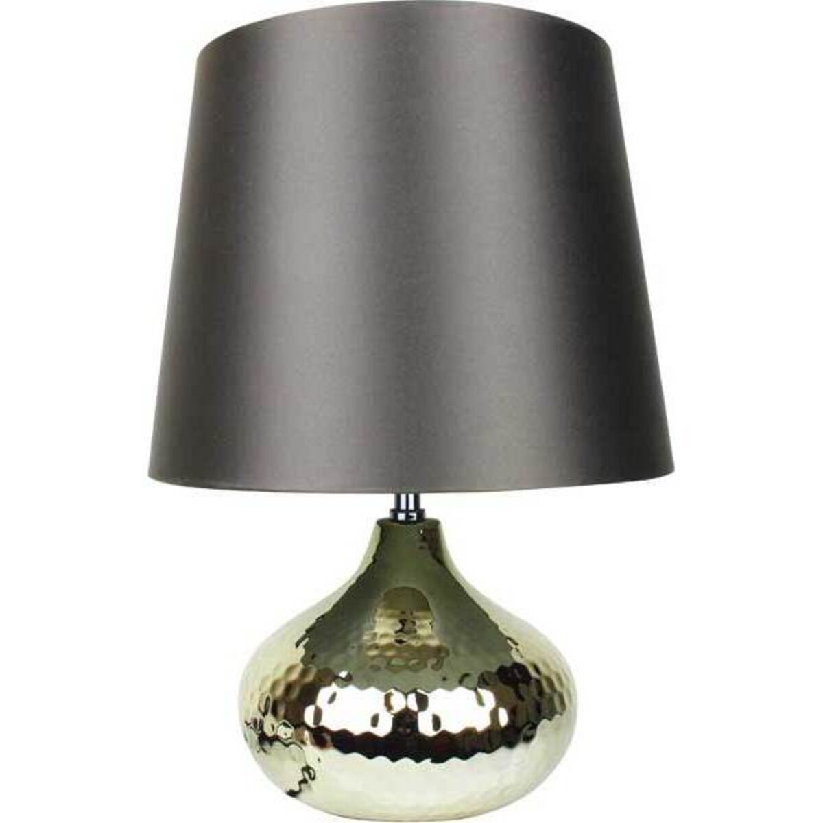 This medium sized lamp is hard to look away from and is sure to catch the eye of customers who are looking for a flamboyant addition to their home decor. While the shade is in a neutral grey colour, the body and stand of the piece itself are what makes it so attractive. The body has a unique circular shape while it dazzles in a silver metallic material textured with hexagonal shapes. This piece is definitely going to be a big hit among all your customers who are looking for an outstanding utility centrepiece for their home decor.