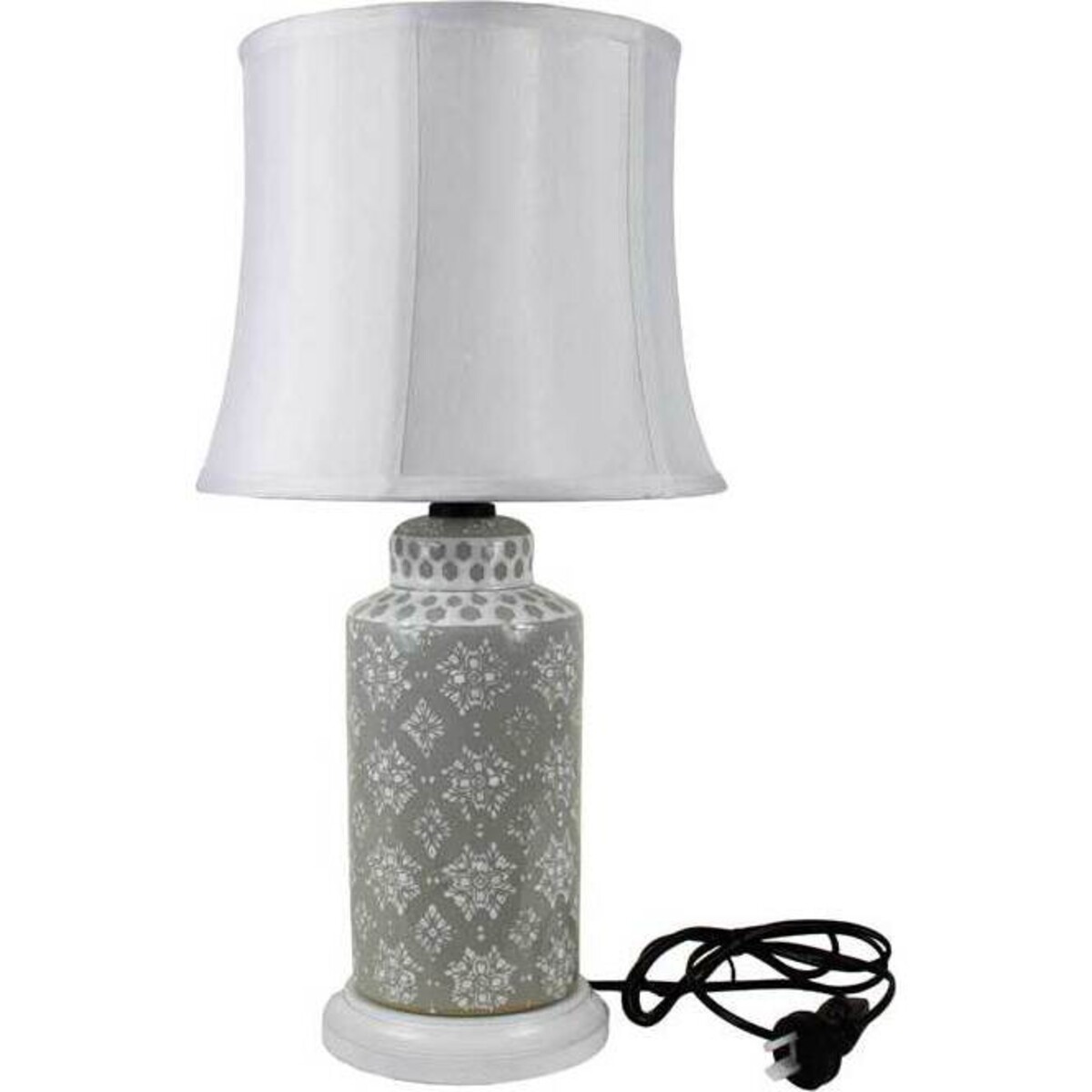 This lamp has solid well-balanced base made of heavy ceramic that hosts a wonderful design all over its exterior. The lamp has height of 62 cm making it well suited for those dark and usually non-descript corners of your home that could need some salvaging-or those corners that get little attention. When you add lamps as handsome and solid as this one you would be changing the look of that space entirely-Help highlight your spaces more efficiently with such inclusions that help you make the most of your spaces and the décor you already have. The ceramic lamp has a lovely grey colour om which one can see the finest of white designs that makes this lamp base so pleasing to the eye. You could add a dull gold shade to it or go with the more predictable white or cream or grey colours. If you want it to have a more luxurious feel-add a rich brocade shade for effect. Lamps as pretty as this can be that statement piece that you so wanted to have to make your home look superbly special.