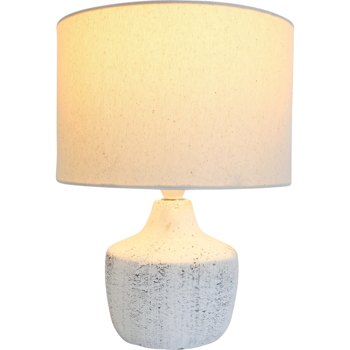 Be it the sideboard that lines up along the long wall of the living room or the console that welcomes you at the entrance of your home, placing a lamp immediately help you highlight the beauty of that space. After all, this option in illumination ensures that as the evening draws closer and shadows lengthen, the soft glow of a lamp will help highlight the best in the décor. This lamp has a solid base that is tinged in blue-it whitens making ty sparkle like an orb in the dark. The shade also in white is cylindrical and its muted colour helps it combine well with all soft colours. The size of the lamp is also a feature that makes it fit in with all kinds of spaces, be it the bedside or the study table or the vanity that could do with that kind of soft glowing illumination. The solid look cement base adds to the modern chicness of the setting and keep the base well balanced despite the large ness of the shade.