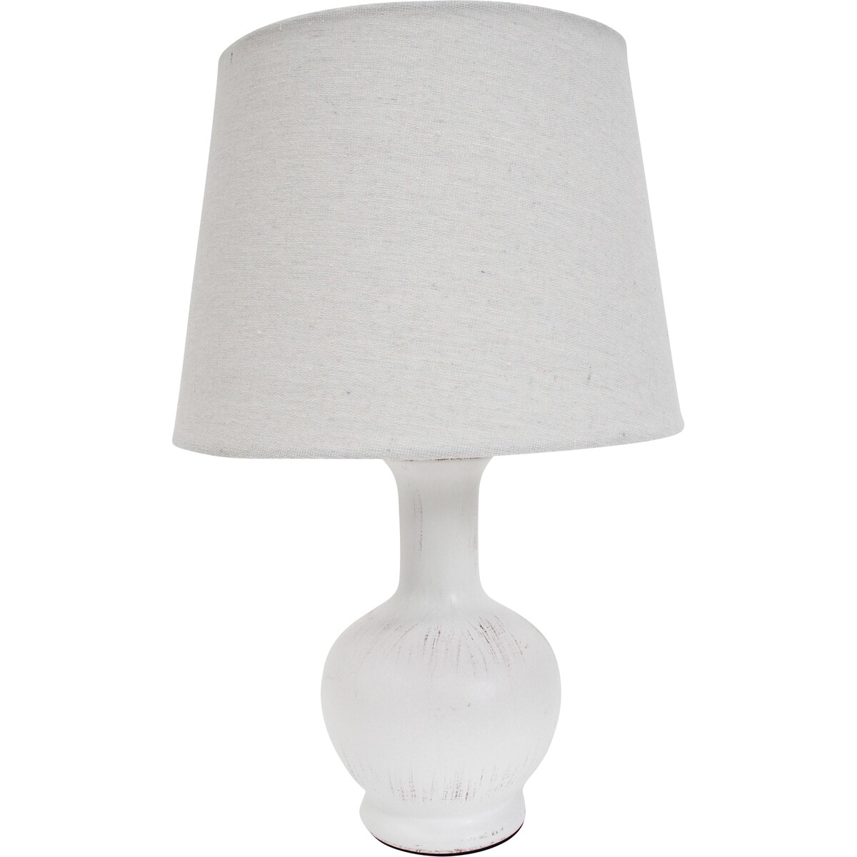 Adding lamps helps you highlight spaces in your decor that need that extra subtle illumination and thus creates layers of lighting that is both important for giving more depth to the space and also helps in bringing to fore its many hidden details. This lamp will fit into practically any modern vintage, shabby chic or cottage and farm look space with an equal amount of ease because of its neutral colour and very basic styling. Simplicity and minimalism being the new catchphrase along with sustainability-the lamp is organic in appeal especially because of the basic linen shade in off white and the slight distressed white colouring. Sits firmly on its round base and despite its height at 42 cm remains well balanced. The shade allows the illumination to be bright and clear. A great addition if you wish to use lamps as part of creating a more subtle highlight in your space.