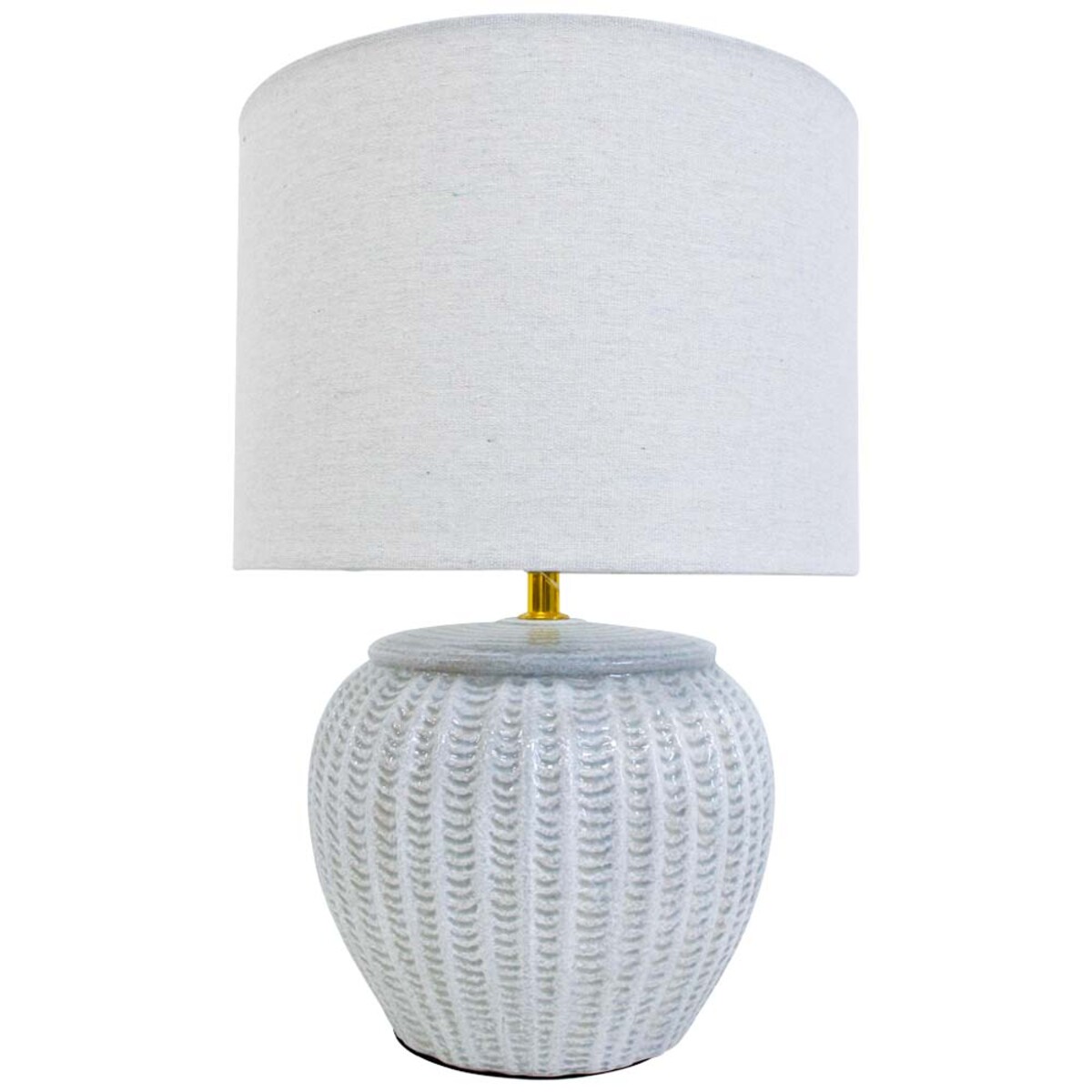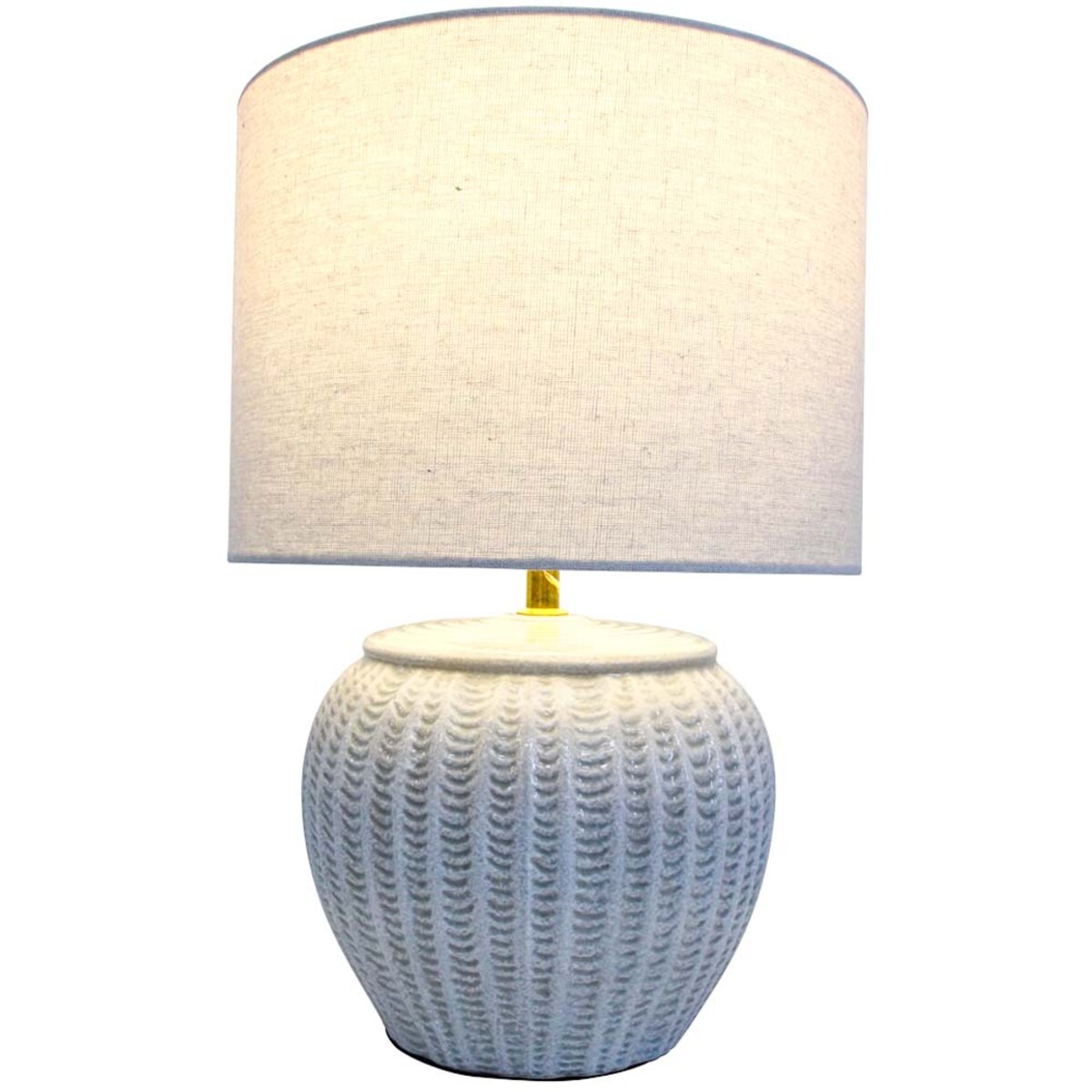 It’s a solid 28cm diameter and 41.5cm high, so not flimsy or dainty. This actually gives off some light, but it won’t overpower a sideboard or bedside either. Ceramic base and linen shade means it’s sturdy, heavier than most at this price-point, and really should become a regular seller through summer.