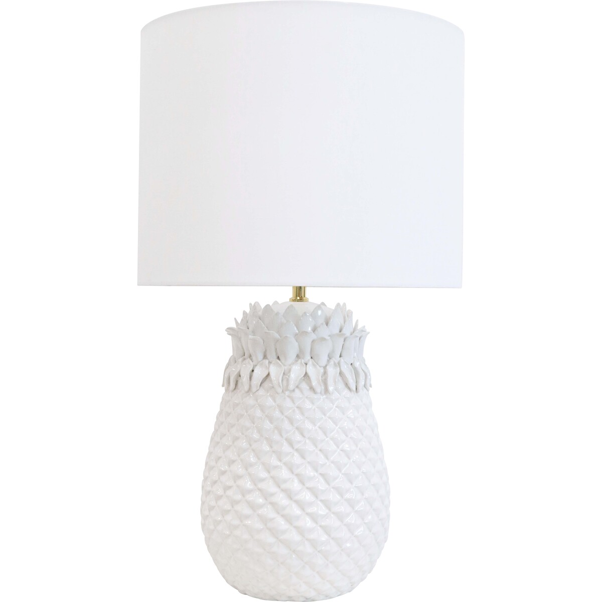There's something about pineapple decor that always seems to bring a bit of fun and elegance into a space, especially when it's done right - and we think this #Lamp Pineapple White is proof of that. This is a lamp that catches the eye but doesn't take over the room, if you know what we mean. It's a great piece for retailers looking to offer customers an easy way to brighten up home or office interiors with a classic touch. The crisp white colour and delicate leaf crown - and the textured ceramic body - gives it such a clean look while still being playful. It definitely works as part of a bright Hamptons or coastal-style setup, but honestly, we've seen it pop in more traditional lounge rooms too. And no two pieces are exactly alike because the reactive glazing used on each one creates a subtle variation in every finish. That's what makes it feel special. The ceramic base is topped off by a soft cotton shade, which really finishes off the 38x38x65cm silhouette. Sure, it’s substantial enough to be placed on its own, but we think it would look beautiful paired together in living rooms or even gracing bedrooms as bedside table lamps. A lovely product for boutiques specialising in homewares and giftware with premium taste.
