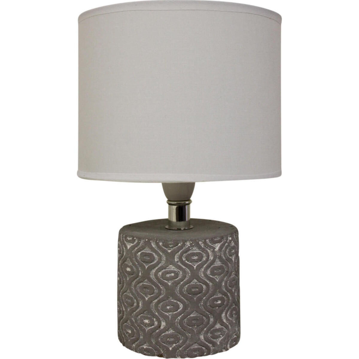 Featuring a ceramic base intricately carved with curved geometric details in a distressed finish, this beautiful luminary brings elegance to any space. The crisp white drum shade adds a traditional touch to the design. Place this on your master bedroom's nightstand or chest for a refined touch and extra glow. Use it to illuminate the foyer console table and complement it with a bright blooming floral vase. You may even add this little lamp to your writing desk to cast light on late night study sessions and DIY projects.