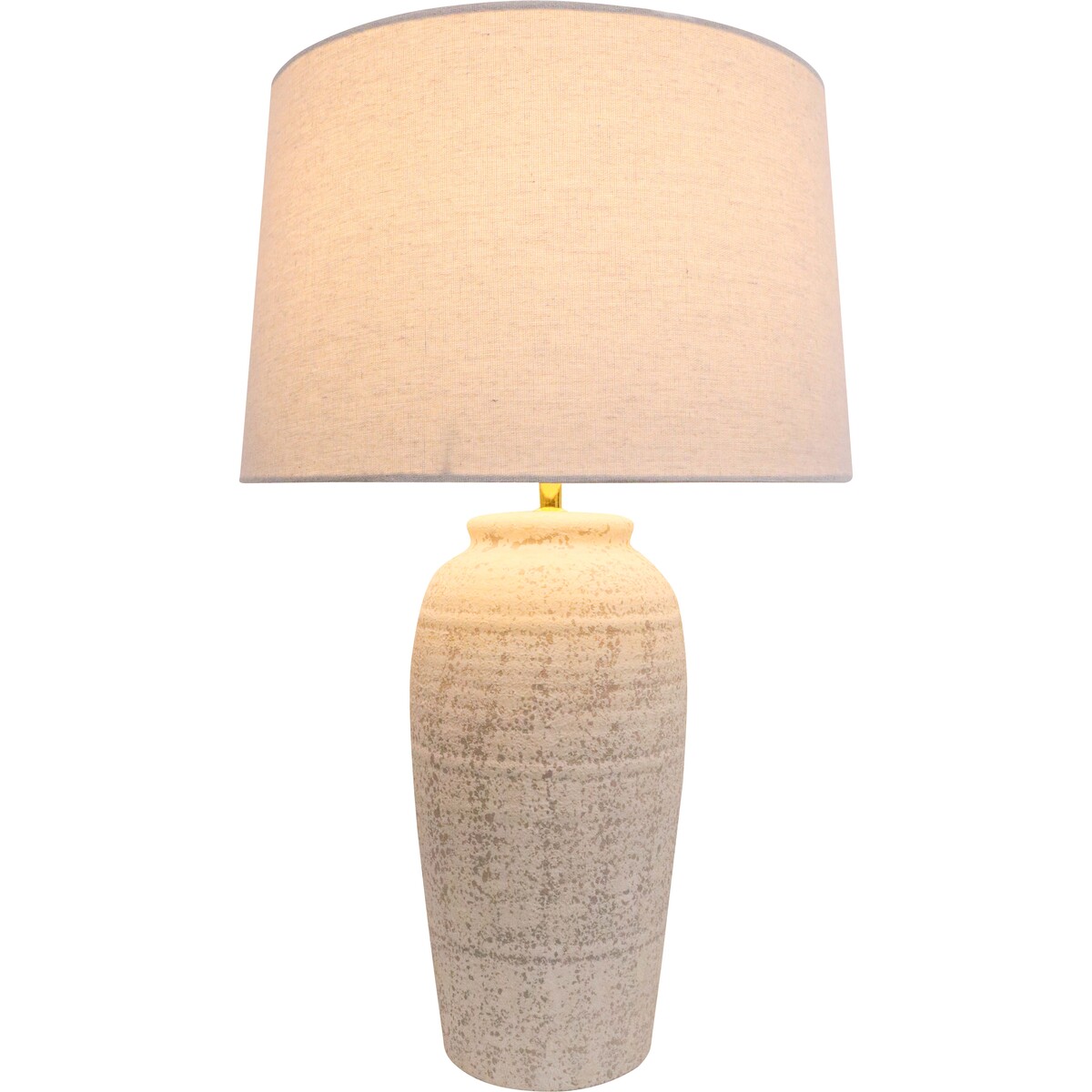 We wanted to bring in something that goes well with almost any decor style and the Lamp Sandrock Lrg does just that. An understated design with a ceramic base that’s finished with a sandy, slightly speckled effect paired with a timeless linen shade - it just blends in. This lamp is neutral but at the same time, it has its own sense of identity, you know what we mean? Because it’s got a slender and tall silhouette, it sits beautifully on side tables in bedrooms or living rooms. The finish really highlights the shape of the piece and gives it a lovely texture. The lamp has this calming aura about it which makes us think it’d look great in an office setting as well. It works for quite a few contemporary interiors and creates a mood - probably even more if you get creative. We’ve got this 40x40x65.5 cm piece in stock right now so reach out to us for trade prices if you think your customers will love these too!