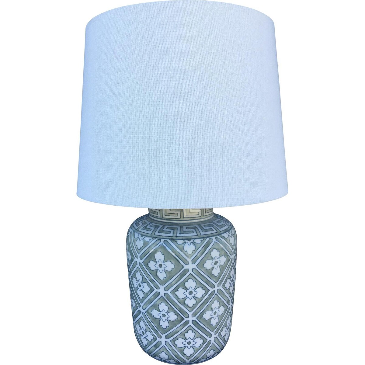 What could be better than a décor article that provides you with the best in an illumination option along with an artisanal quality crafted piece. This ceramic lamp with its beautiful pattern in grey blue and white makes a huge difference in the manner in which you look at art. The smoothness of the base comes from the superb glaze achieved by the right firing of the ceramic by experts. The smooth soothing colours and the delicate pattern shows the handiwork of centuries of expertise. Would look as great on a console table as it would atop the study table or the sideboard and bedside tables. A kind of accent whose place surely belongs in a more classical traditional decor, yet its gorgeousness can be enjoyed with as much appreciation in a more modern setting. The height of the ceramic base is 49 cm while its maximum diameter is 28 cm and it possesses an oblong shape ending in a wide well - balanced base. Wil look great topped with a dull white or grey shade.