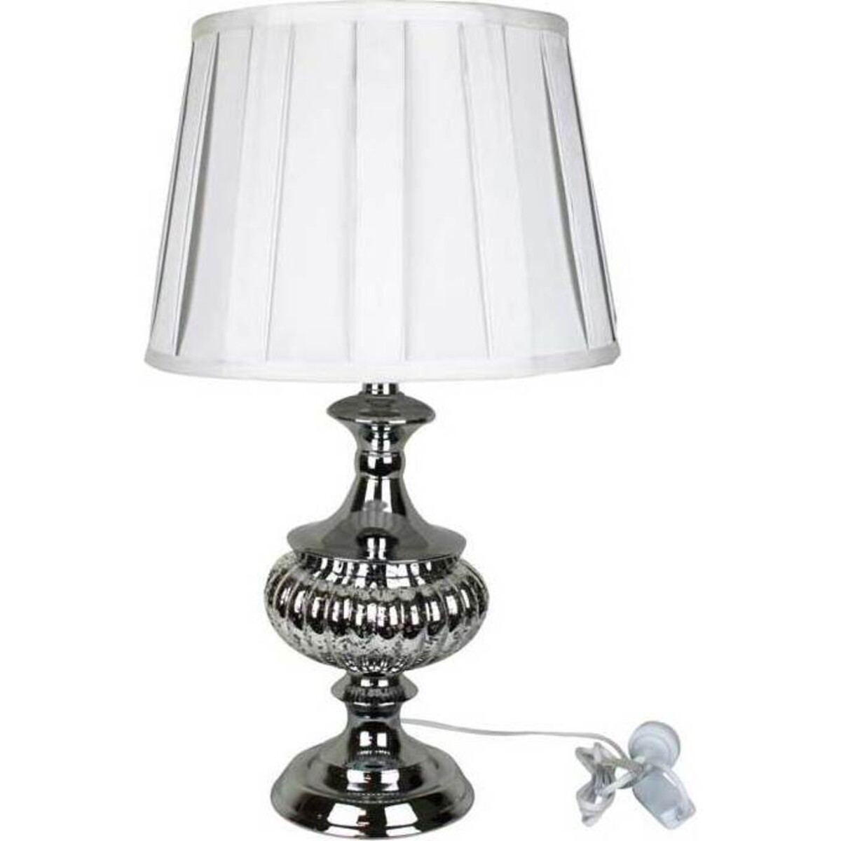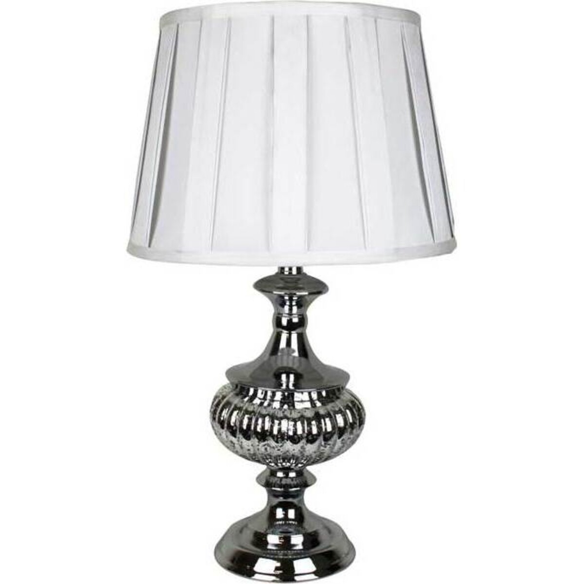 This artistic lamp is certain to be a big hit with your customers. The white pleated shade creates a clean neutral effect while the body does the rest of the work. The stand of the lamp is reminiscent of a beautiful shiny candelabra and has the same metallic quality to it. The lamp has the effect of decadence with its detailed body design while the white shades create a balance with its simplicity. This piece is going to definitely attract a lot of attention from homeowners and decorators alike who are looking for such a statement piece.