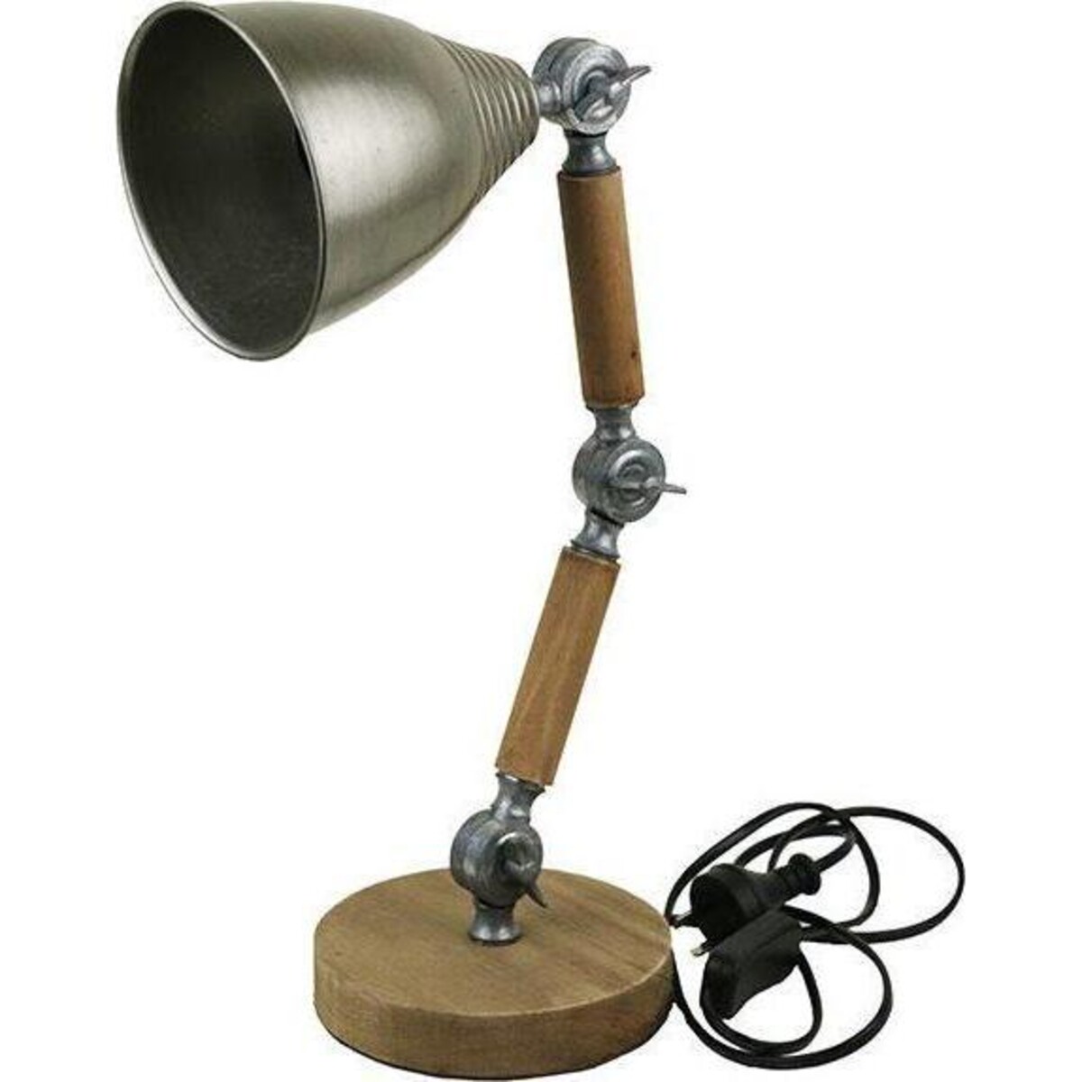 Created in a unique sort of design, this angular stem lamp with joints made of metal is avivid creation which uses two very different kinds of materials as diverse as metal and wood in design which is reminiscent of the times when utility was paramount and frills and embellishments shunned. Here is a lamp that can help build that rustic industrial appeal on your study table. The wooden portions are smoothly finished and the metal has been polished to the right hue. The height of the lamp is 34 cm. It sits well balanced on its wooden base and its arm with joints in two places can be adjusted with ease. The metal shade is the same colour as the metal joints of the angular arm. Would suit the study room, the children's room or your den. Even works well as bedside lamp for perfect reading accompaniment. The shape of the metal shade will allow focused light especially when you need to read or work.