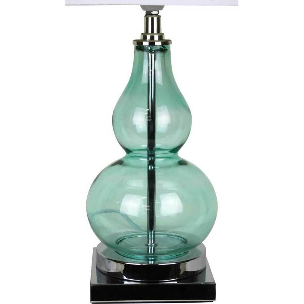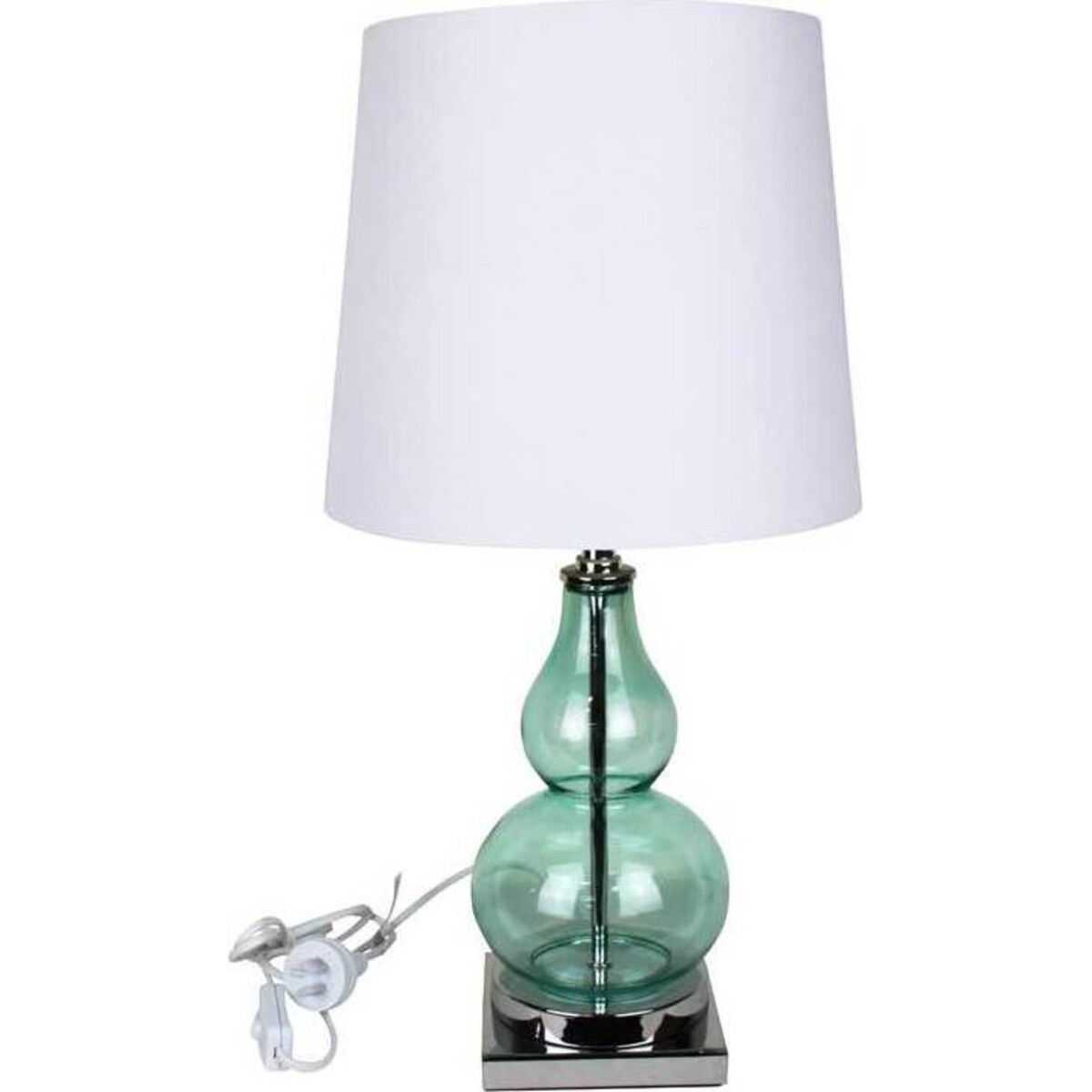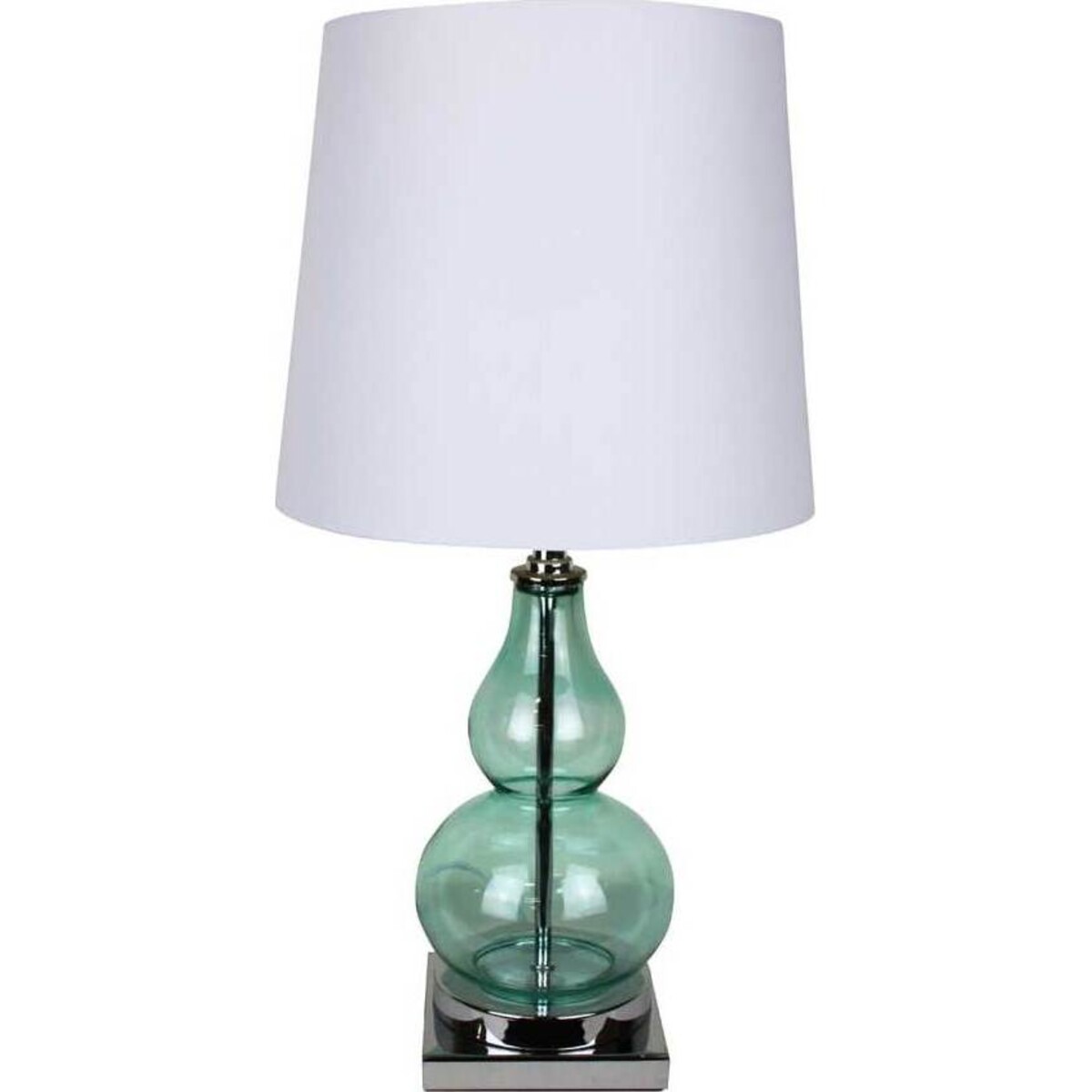 This medium sized elegant lamp is the perfect addition to a home where the decor is simple and yet stylistic. The teal glass body of the lamp is an attractive and unique idea for a lamp; this is probably the design element that is going to catch the eye of the customer. The neutral white shade makes for a lovely balancing out of the design, so the lamp doesn't appear to be over-the-top but simple in its appearance. You can be sure that this piece is going to be very popular among customers of all age groups.