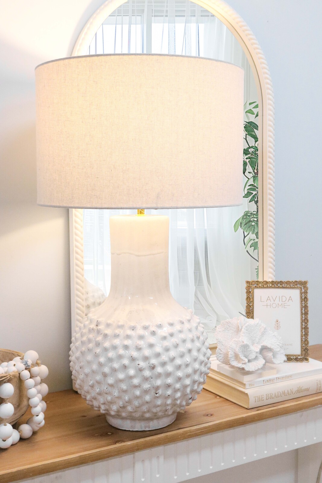 Our Lamp Waihi XL is the kind of statement piece you want to talk about but also keep a bit hush-hush so your store is the only one with it, if you know what we mean. This lamp doesn’t just light up a room - it owns it. The moment we unpacked the sample in our studio, we realised just how unique that terracotta base was. You get this mix of textured dots and an organic, rounded form that’s instantly striking but also not showy or in-your-face. The crisp linen shade keeps things balanced.