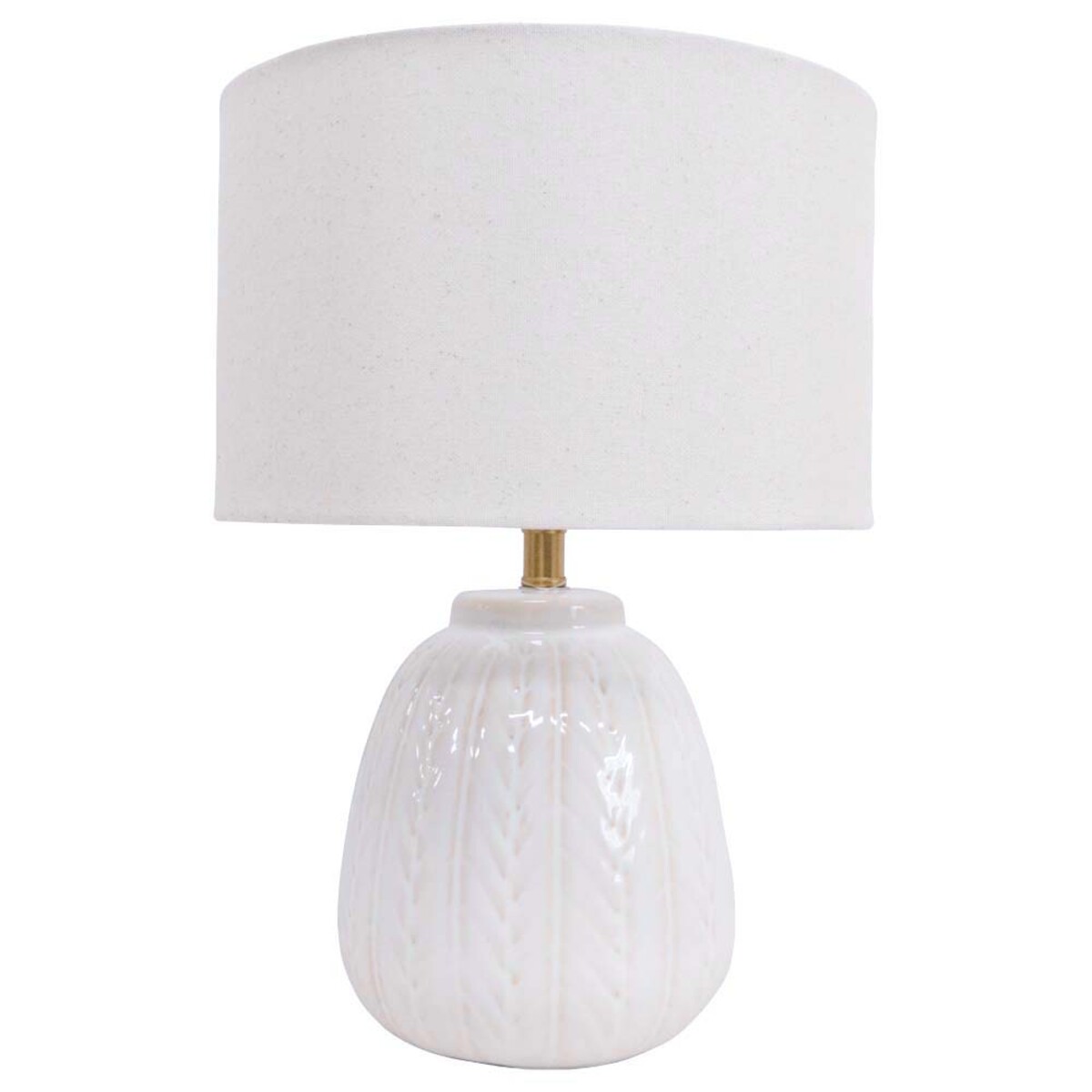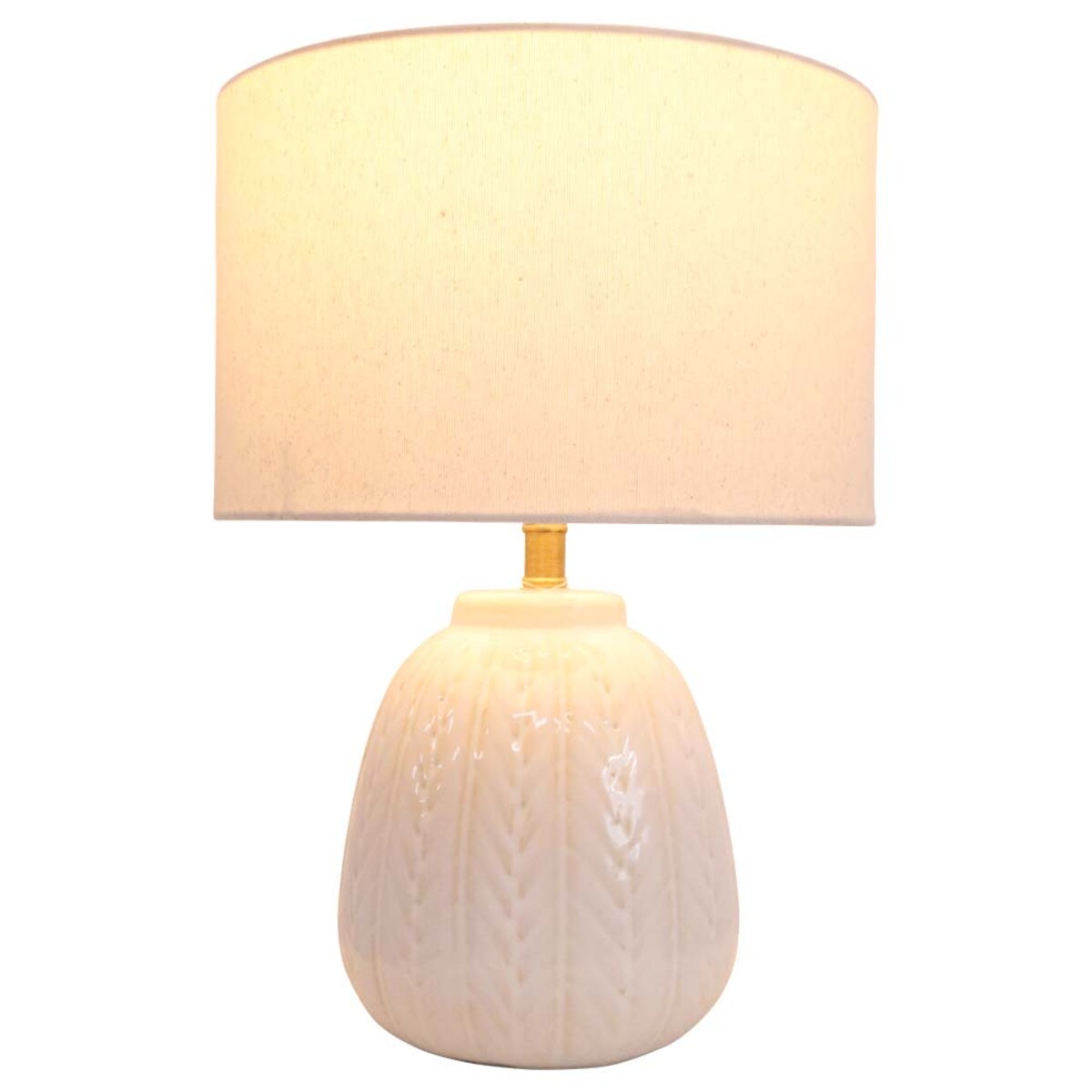 We absolutely love a white lamp. There’s just something about how it quietly works in any setting, day or night. The Lamp White Leaf - at 25x25x36cm - brings this lovely kind of calmness to the table. Or the sideboard or next to the couch or beside the bed. It does this through a simple design - soft white, glossy finish on the ceramic base with intricate texturing and a clean, cylindrical shade.