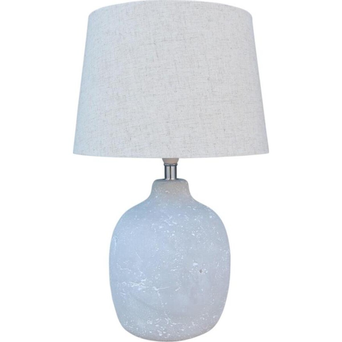 The colour of the base is soft and the shape rounded, -super cool in its look, much in keeping with the summer feel space you might be intending to create for your home. This tall 51 cm high lamp will look especially grand adorning the top of a grand mantle or a sideboard or even the entryway console that is topped by an artwork on the wall which will then get highlighted by the illumination from the lamp. The slid base is toppled free despite the large size of the shade. The cylindrical shape of the shade complements the shape of the base whose cool blue colour has been created with much acre from smooth white cement speckled with blue and white. The dainty shape of the base and the simple plainness of the shade touches the space with a cool refreshing simplicity opening up the walls for more grandiose designs and thus allowing drapes and furnishings to be more patterned. Could be used as much in the bedroom on the bedside table or your vanity table alike.