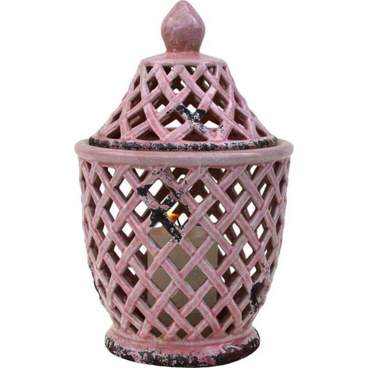 These lanterns add a lovely touch of elegance wherever they're placed. With their pale pink colour, brown detailing to simulate antique wear, and criss - cross design, you'll adore showing them off. The light reflects beautifully through the diamond shaped openings to create a soft and inviting glow. Considering the blush colouring, they're ideal for spring, but they're also beautiful enough to display all year long, including for summer parties, weddings, birthday parties, and baby showers. With their classic design, these lanterns will never go out of style, so you can continue to use them for years to come.