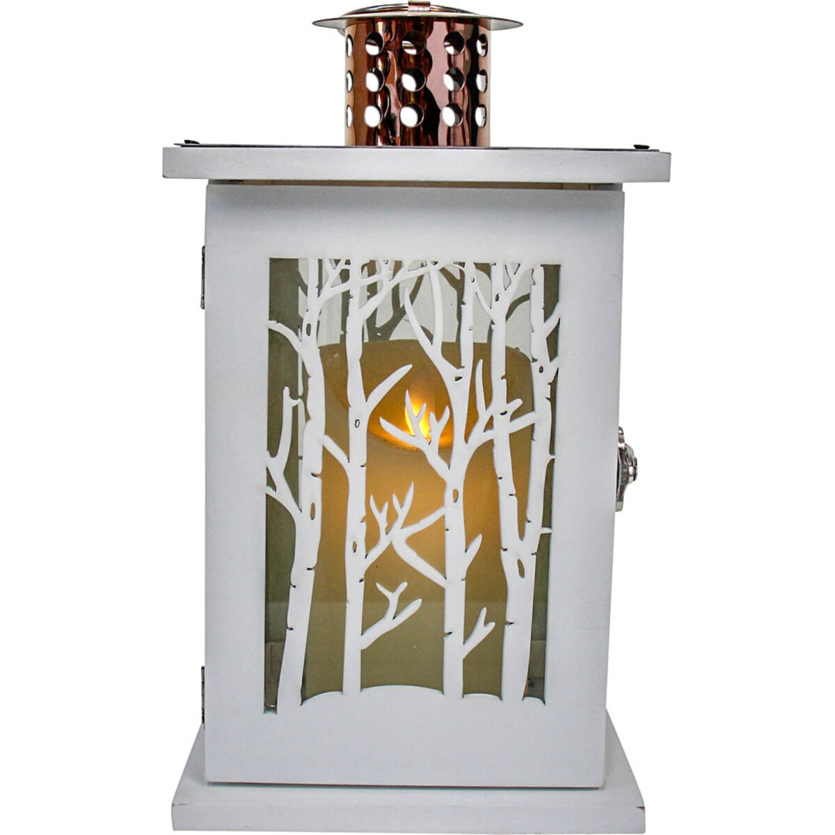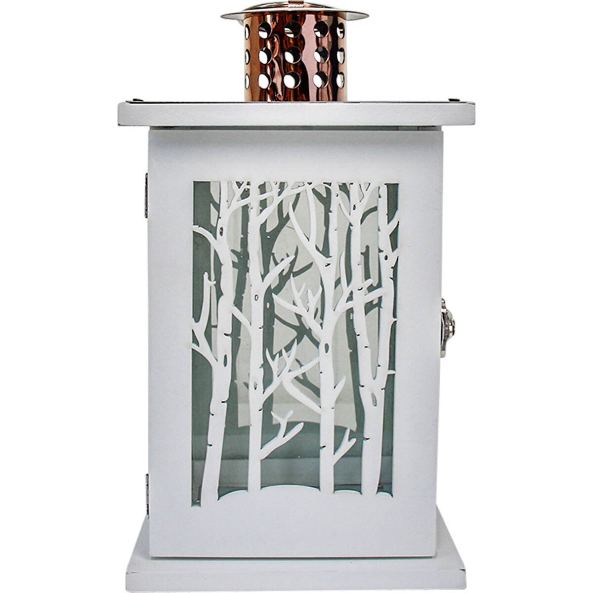 The Lantern Branches White is more decorative than conventional lanterns with its ultra-chic tree branches patterned glass frame. Made in a shapely square, the base and frame is made of specially engineered Medium-Density Fibreboard while the top is a resplendent perforated metallic chimney and the sides a tree patterned clear glass. It comes with an ergonomic handle which provides comfortable grip to customers whenever they intend carrying it about the house. The classic white palette makes it possible for this lantern to blend in with every décor since white is a universal colour that goes with all other colour. Using it is easy. Customers need only open, place their lit candle in it and close. It is as easy as eating cheese.