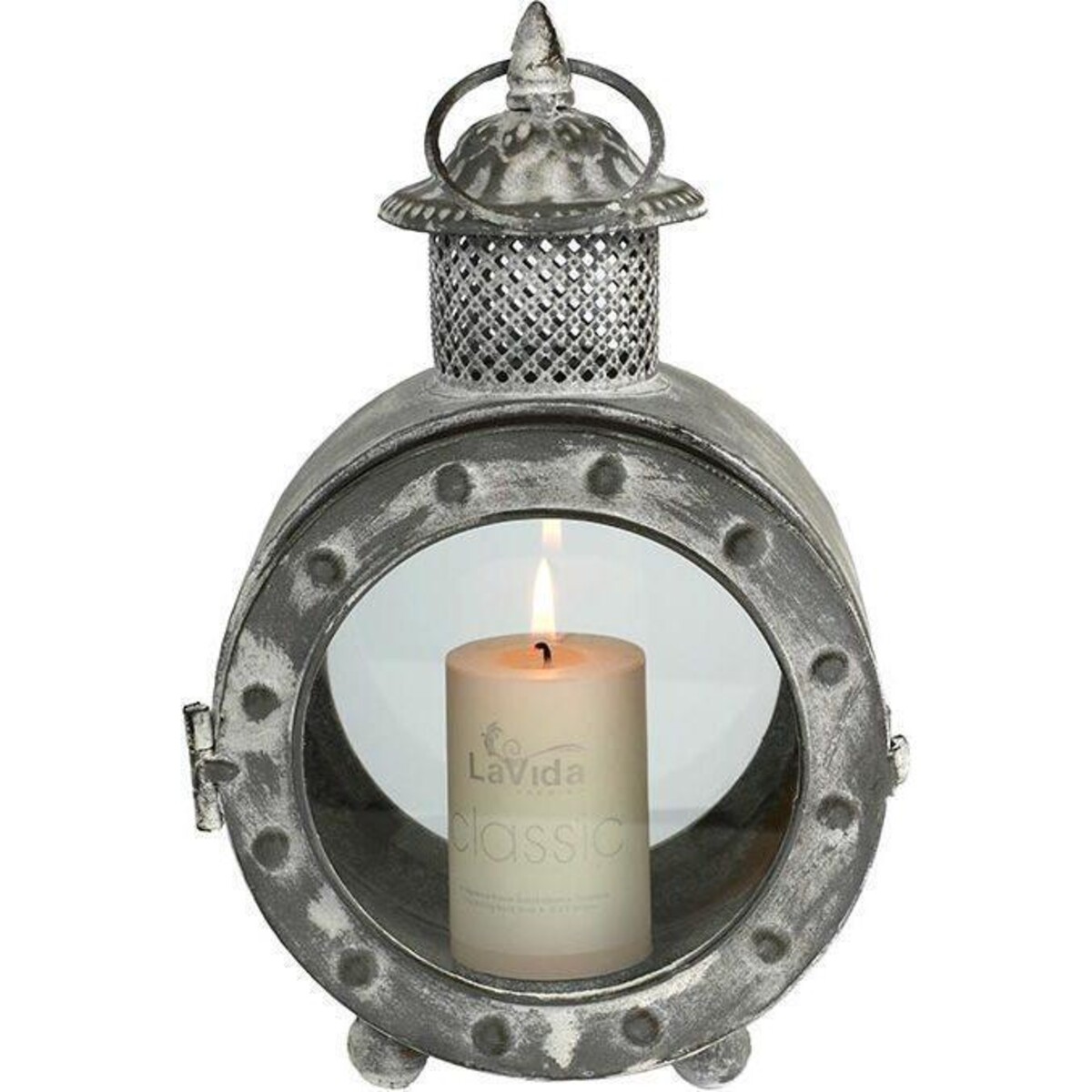 Great for indoors and the outdoors, the lantern Carro allows easy portability and give protection to the flame as it is designed in such a way that the pillar candle inside will be protected from the wind. About 31 cm tall, the metal body is round with tiny protruding chimney that sits atop the frame and allows the flame to get sits supply of oxygen and allowing vent to the heat. The round face of the lantern is glass covered allowing the light to disperse with ease. The lantern has tiny legs that will give it a slight elevation when placed on surfaces that are irregular. Can be placed on tables, corners or the main dining table also and create quite a winsome look with its lovely features. A winner when it comes to ease of use. Its 31 cm height and 18 cm width with 9 cm depth allows it a substantial presence wherever it is kept. Rustic, mood inspiring and very chic in every sense.