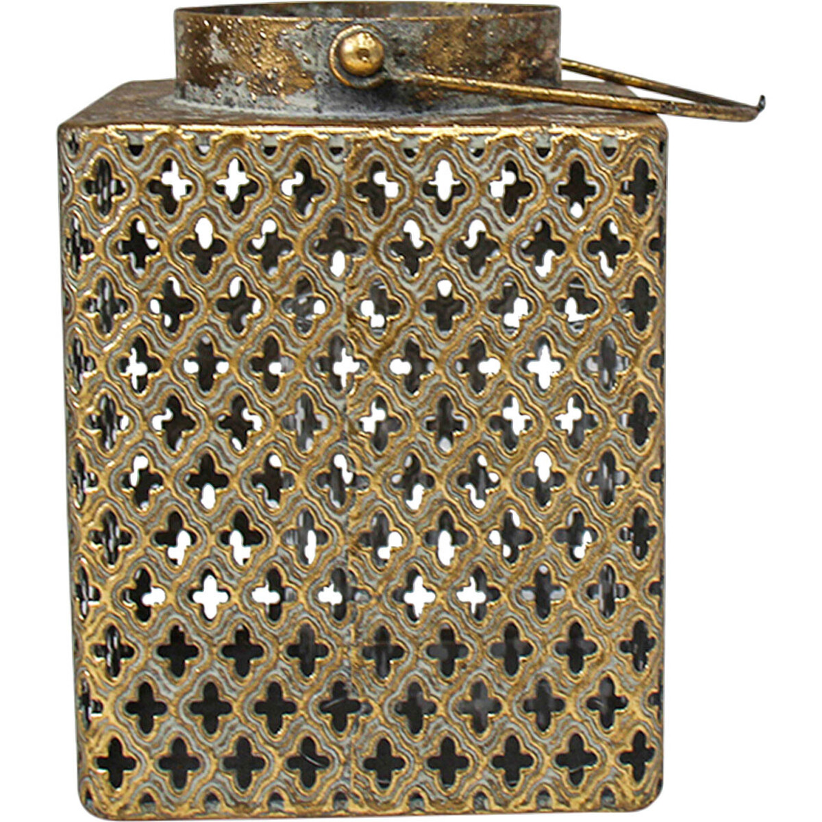 Made of premium quality metal with a 17 centimetres tall square design, this Lantern Cesme Medium is a practical lantern that serves practical purposes. It was designed with a medium sized capacity which allows the user to insert a goodly sized candle that can burn for several hours continuously. It comes with a durable, crystal clear glass insert in which the candle can be placed. The candle then produces such charming lantern lighting as the candles glows through the open spaces in the net-like pattern of the lantern. Apart from its functional lighting, it is also a perfectly decorative home ware with its shabby gold weathered design.